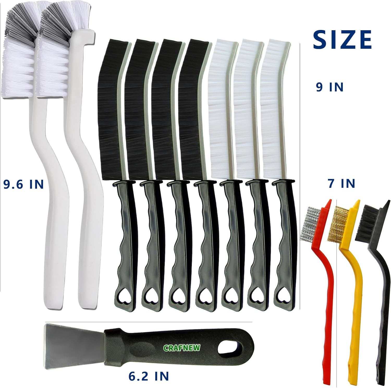 13-PIECE CLEANING SET: Our crevice brush kit features 7 stiff-bristled crevice brushes for household, kitchen, and bathroom use; 2 right-angle brushes (perfect for blenders or baby bottles); 3 colored brushes for demanding tasks; and 1 scraper for stubborn residue. This versatile collection tackles every cleaning challenge, reaching even the most inaccessible areas in your home.