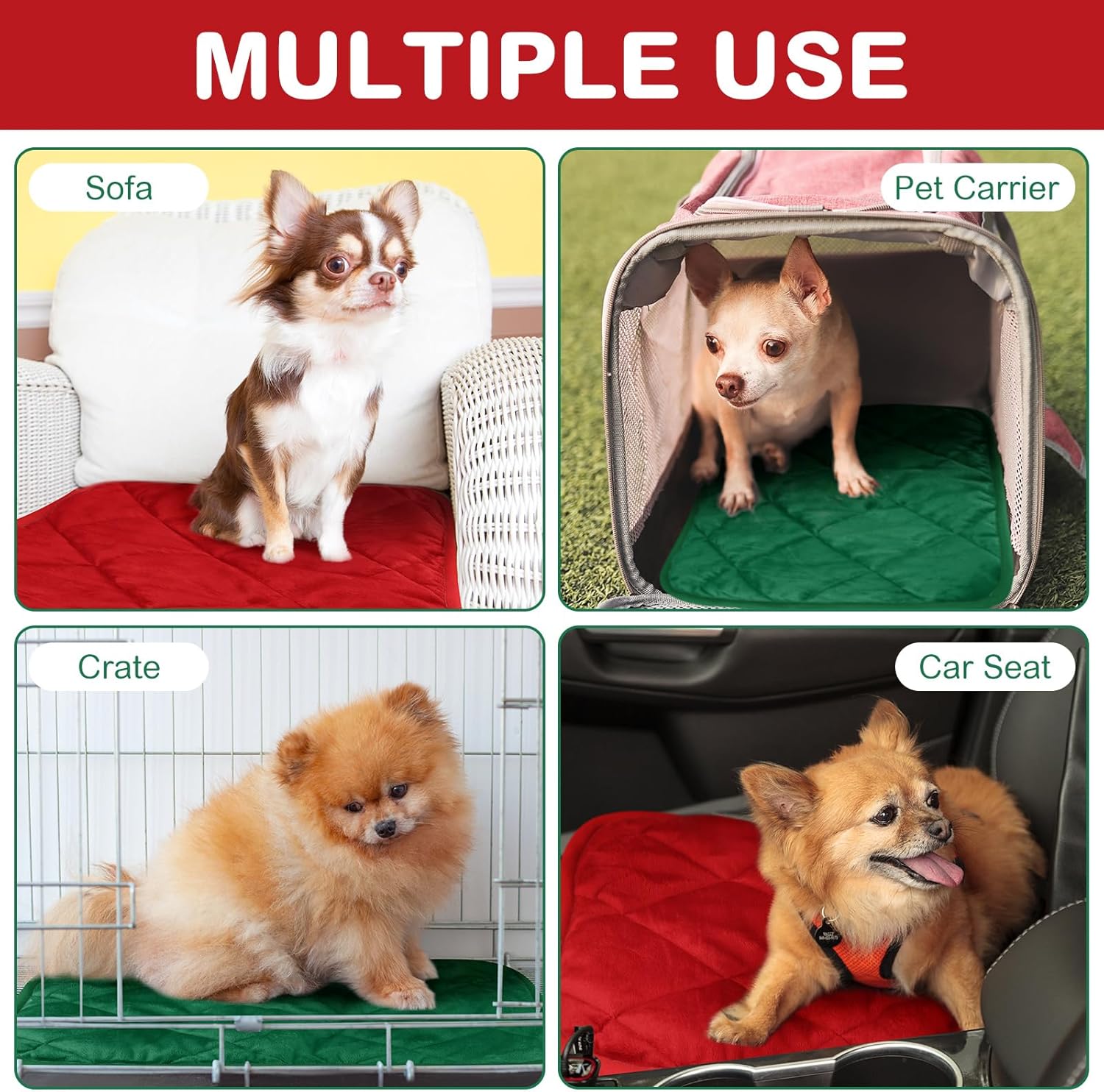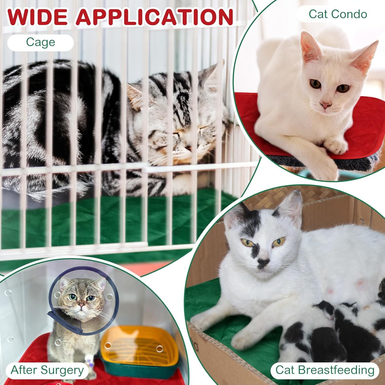2 Pack Self Heating Cat Mat Self Warming Pet Pads Washable Kennel Mat Dog Crate Pad Reflects Body Heat Non Skid Cat Thermal Pads for Puppy Indoor Outdoor (Red, Green,16 x 20 Inches)