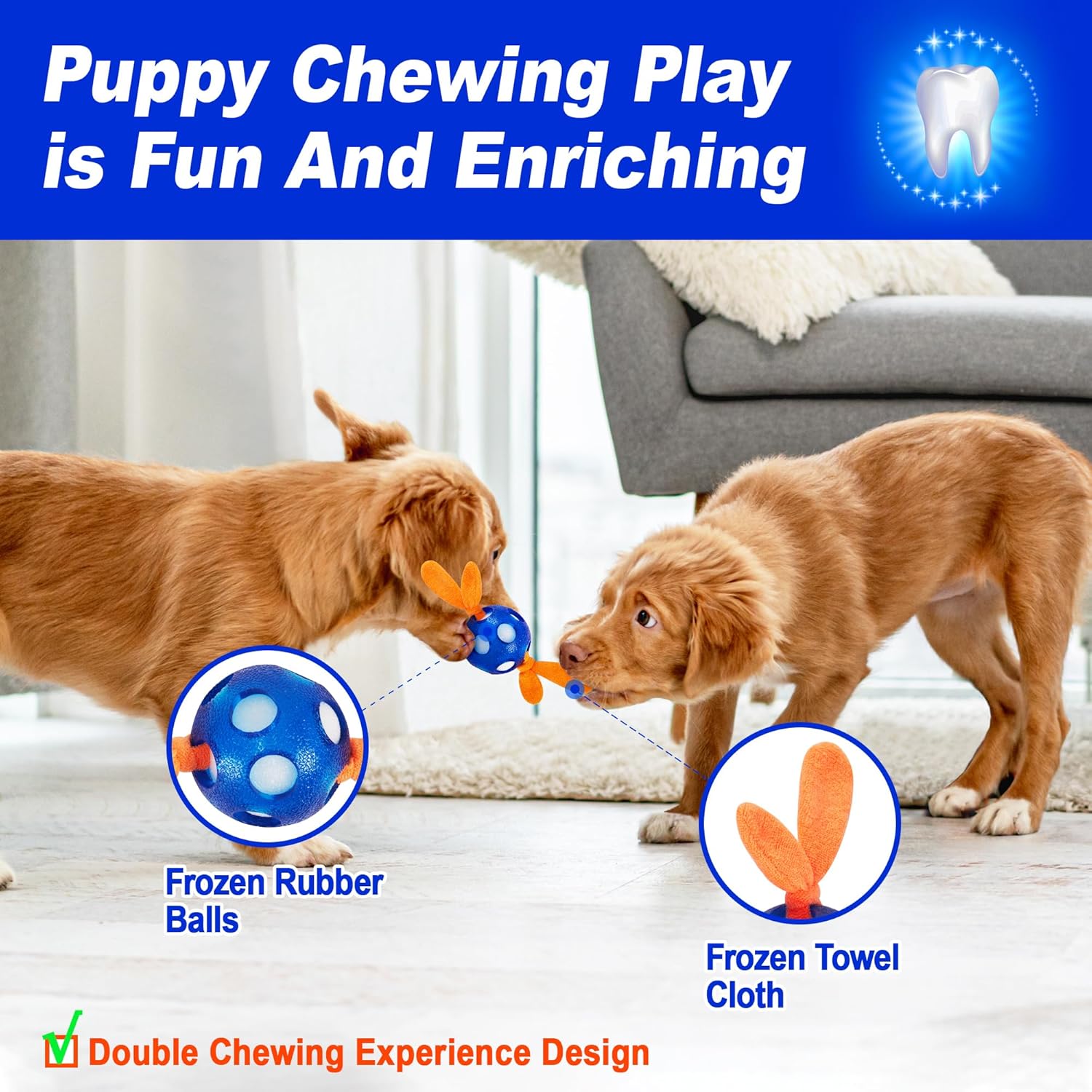 Puppy Chew Toys are Safe and Environmentally Friendly: Frozen dog toys for teethingare reusable and have no added chemicals, if you and your puppy have any ideas and comments about our products, please feel free to communicate with us, we will process your return or exchange right away within 24 hours.