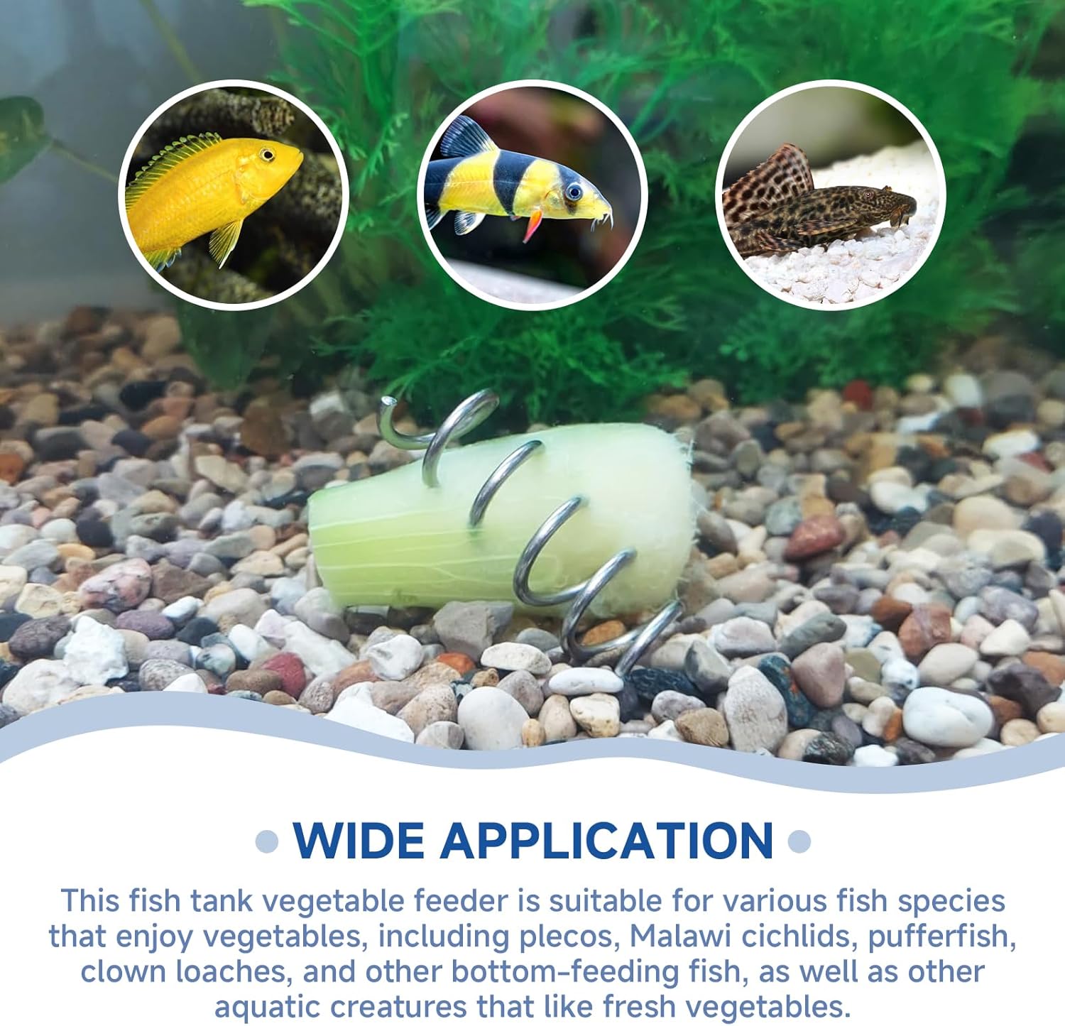 【Wide Application】This fish tank vegetable feeder is suitable for various fish species that enjoy vegetables, including plecos, Malawi cichlids, pufferfish, clown loaches, and other bottom-feeding fish, as well as other aquatic creatures that like fresh vegetables. Whether for freshwater or saltwater fish, this feeder easily meets their vegetable feeding needs
