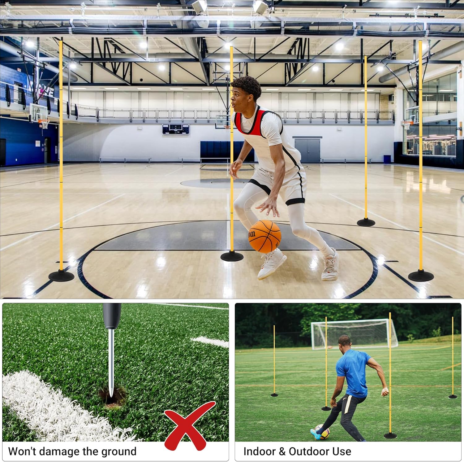 The inclusion of the heavy-duty rubber bases is the game-changer here. Unlike poles that rely on flimsy stakes, these bases are perfectly weighted to keep the 6-foot poles standing rock-solid on indoor gymnasium floors, concrete, or turf without shifting. This feature alone makes them indispensable for year-round training. They handle quick lateral movements and incidental contact without tipping over. The 6-foot height is perfect for training everything from defensive positioning in basketball to proper stride length in football and soccer. The poles themselves are sturdy, detachable, and feel like they will last for years, even with constant use and transportation. The detachable design is simple yet brilliant, making setup and tear-down incredibly fast, and storage takes up minimal space. If you are serious about improving footwork, speed, and lateral quickness in any sport, or if you simply need high-quality, durable training equipment that works seamlessly both indoors and outdoors, look no further. This set is a professional-grade investment.