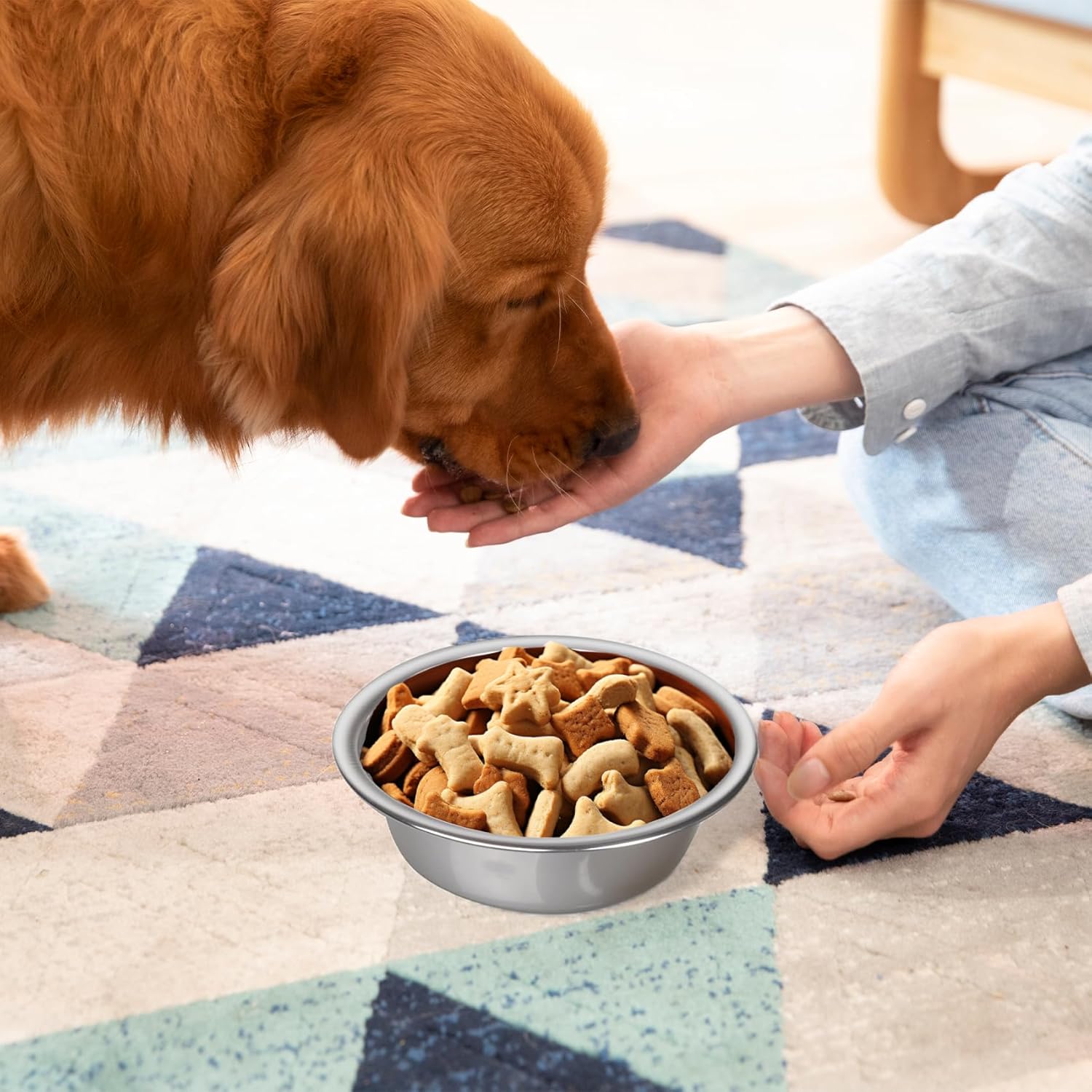 Safe & Sturdy: The dog food bowls are made of high quality stainless steel with smooth edges, they will not hurt your dog’s tongue. Thickened material makes the stainless steel dog bowl more sturdy and wear-resistant, not afraid of fall