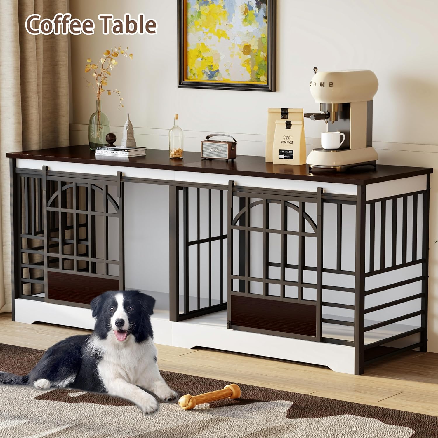 78 Inch Double Dog Crate Furniture, Extra Large Dog Kennel Indoor with Divider, Heavy Duty Dog Cage for 2 Dogs, Decorative Wooden Dog House Decorative Table TV Stand, Pet House for XLarge Dogs,White