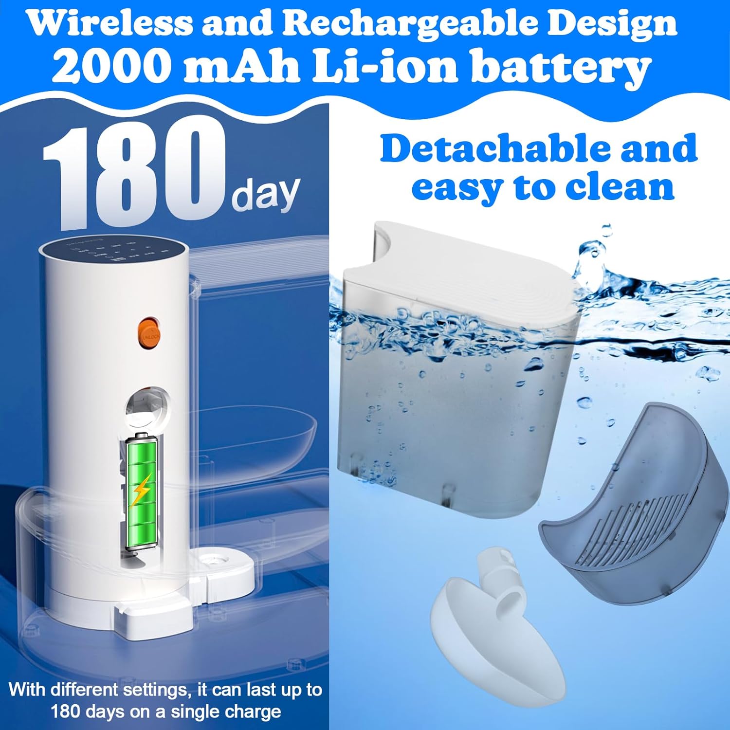 Long-Lasting Battery Life for Peace of Mind:Picture this: your feline friend enjoying a constant supply of fresh water for up to 6 months without the hassle of constant recharging. This rechargeable cat water fountain extended battery life of up to 180 days is a lifesaver for busy pet parents and frequent travelers. It ensures your kitty has access to clean water, even when you’re away