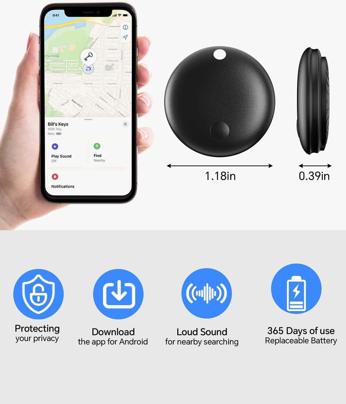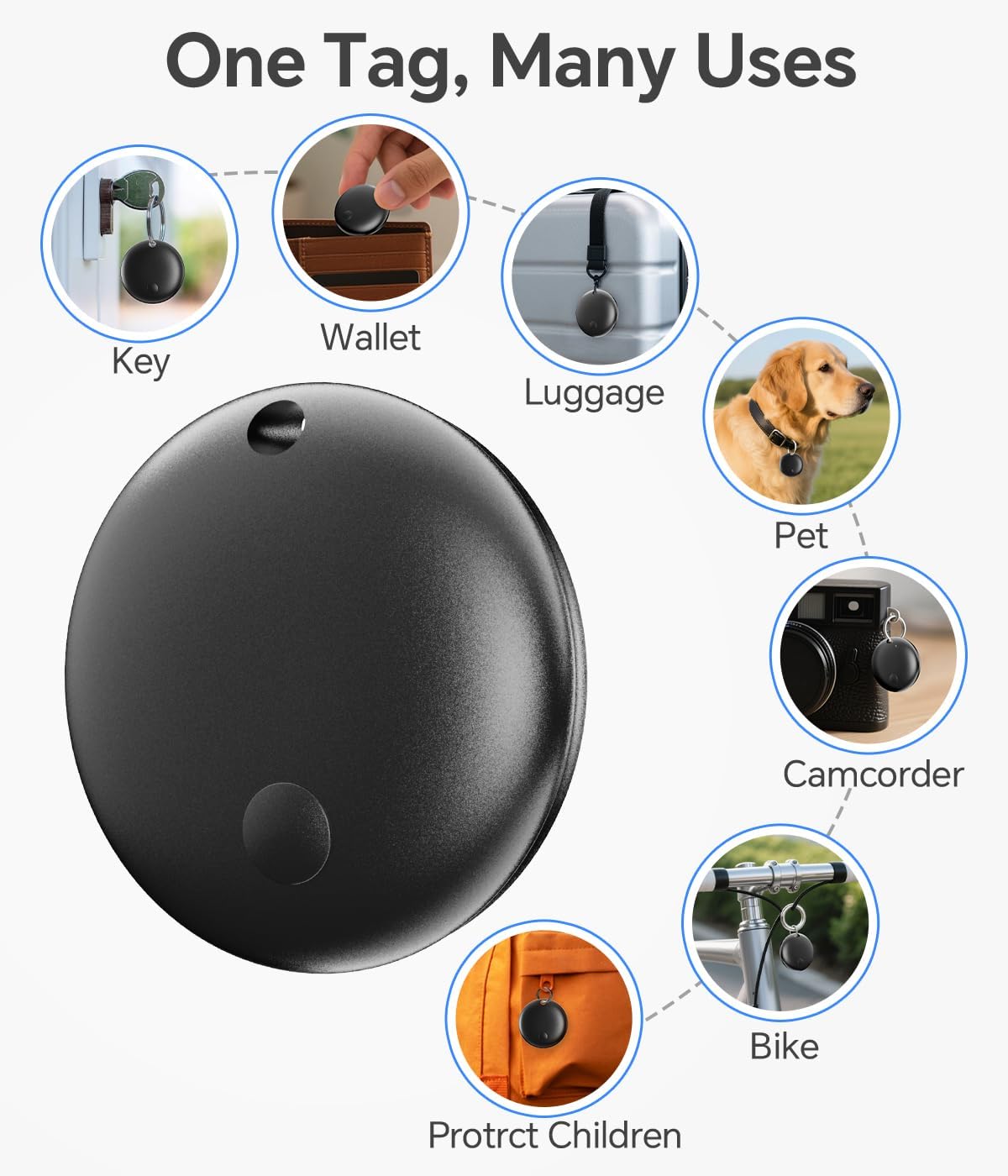 Versatile and long-lasting:This luggage tracker uses a CR2032 battery that lasts up to 1 year, making it easy to use even outdoors. The tag easily attaches to your keys, wallet, pet collar, camera, luggage, backpack, or cycling gear without adding bulk. It prevents your everyday essentials from getting lost. You can also use it to track lost pets or children. Plus, our reliable customer support team is always ready to answer any questions you may have