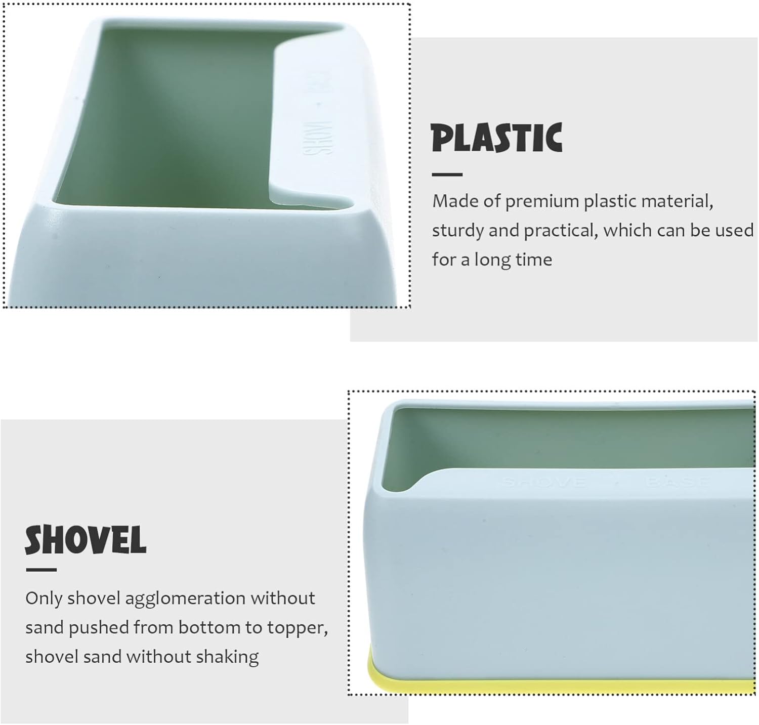 – Scoop Storage Holders Only shovel agglomeration without sand pushed from bottom to topper, shovel sand without shaking.
