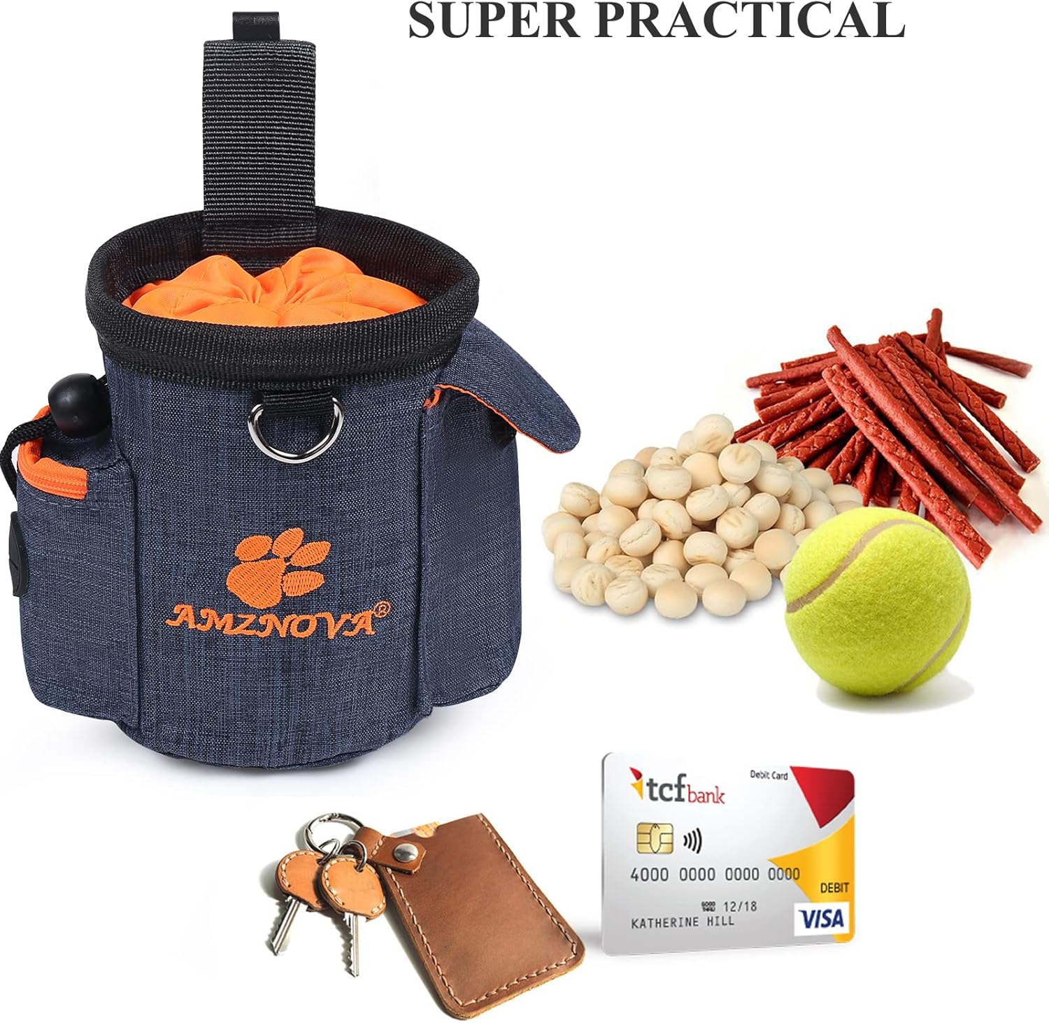 This little bag is perfect for helping me train my puppy. It’s sturdy and it has different pockets for the treats and then I have the poop bags in another pocket so I don’t have to carry a bunch of things separately. The material is great and washable and I like how it can clip on your pants easily. Great product. Great price.