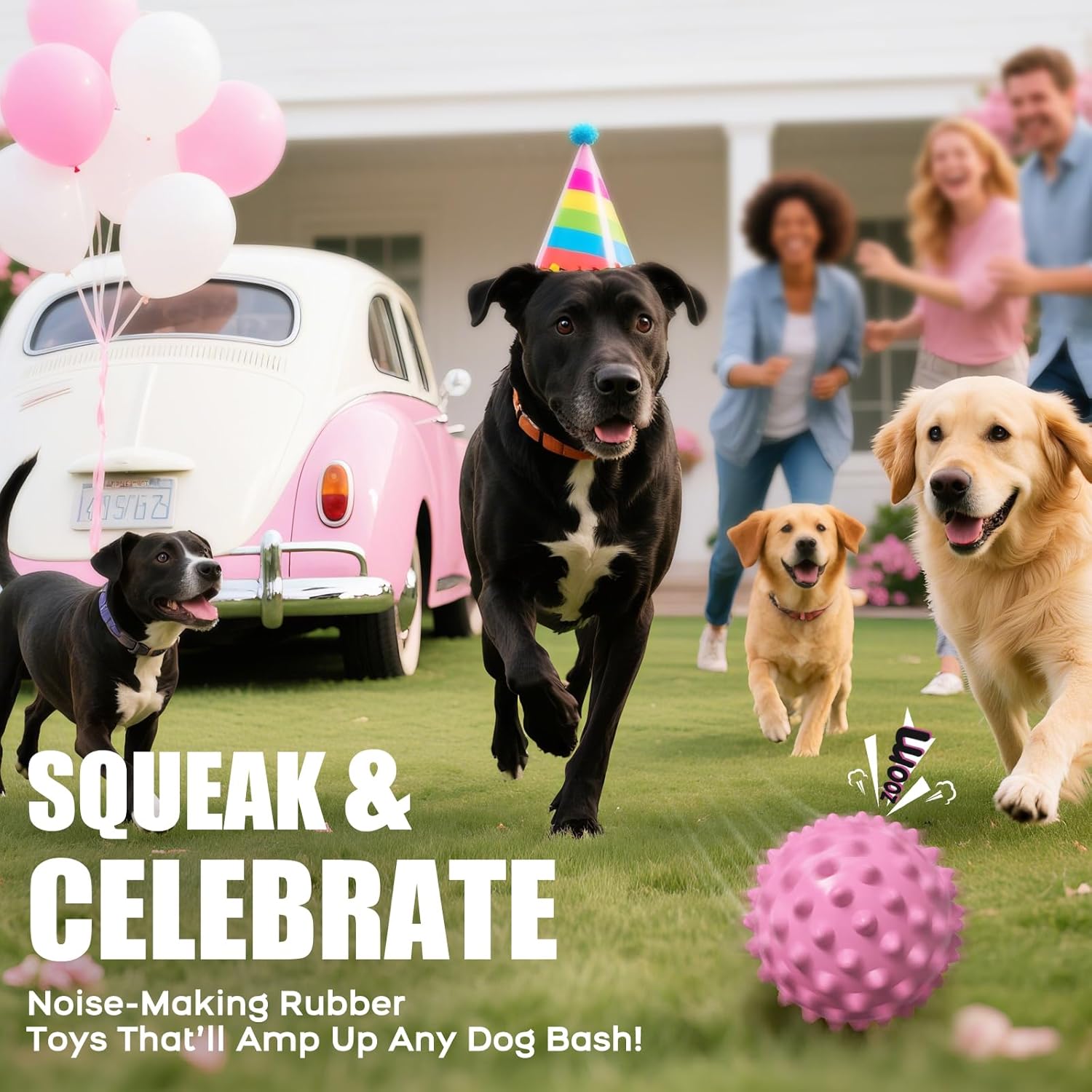 8 reviews for Apasiri Dog Toys for Aggressive Chewers: Dog Chew Toys to Keep Them Busy, Interactive Squeaky Dogs Balls, Dog Birthday Puppy Toys for Medium/Large Dogs, Rubber 3.5-Inch Christmas Party Pink Gift Ball