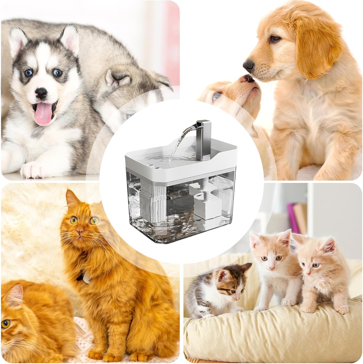 Effortless Water Management: This cat water dispenser is designed with a smart refilling mechanism, providing long-lasting capacity to support multiple pets and reducing the need for constant monitoring or refilling, perfect for families juggling work and pet care responsibilities