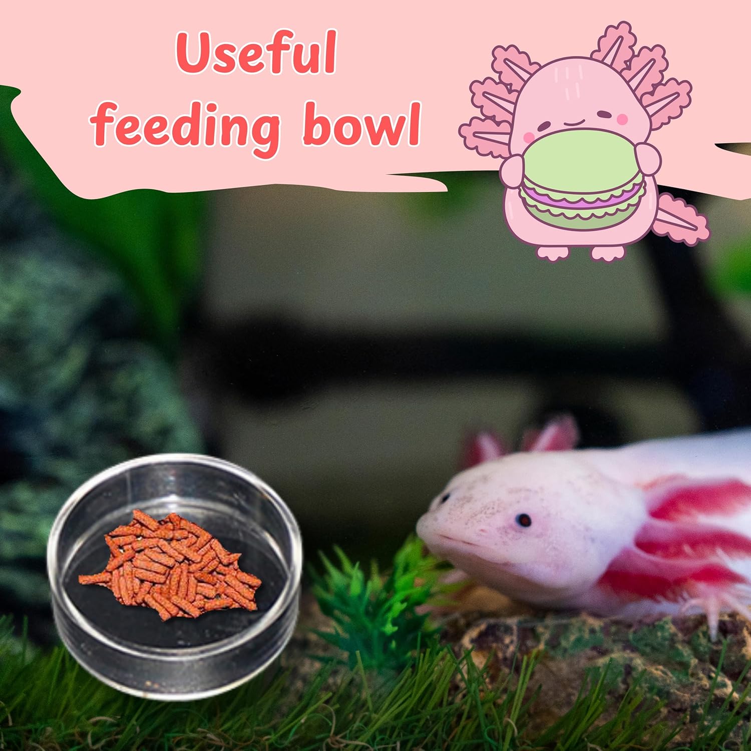 Complete axolotl care solution: This reptile water dish set includes two hammocks and 1 feeding dish, aquarium feeding dish, axolotl tank decor, offering a comprehensive solution for your axolotl’s needs. The feeding dishes are easy to clean and prevent food from sinking, keeping your aquarium tidy and your axolotl healthy