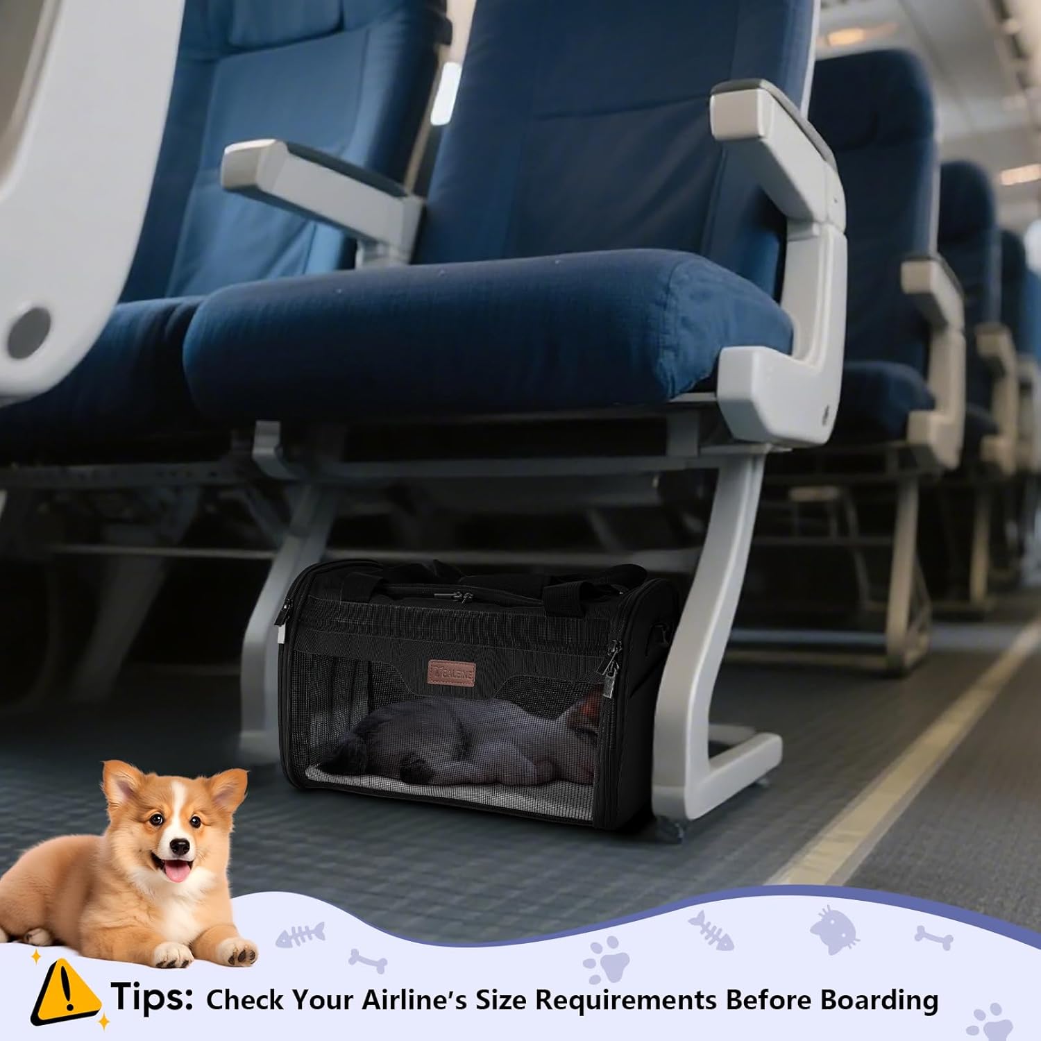Check Size First: The pet carrier is collapsible and available in two sizes: L (17″x11″x11″, Airline Approved) for pets up to 15 lbs, and XL (19″x12″x12″, NOT Airline Approved) for pets up to 22 lbs; Note: Check your airline’s size regulations before boarding to ensure compliance; For a proper fit, please reference your pet’s length and height rather than relying solely on weight