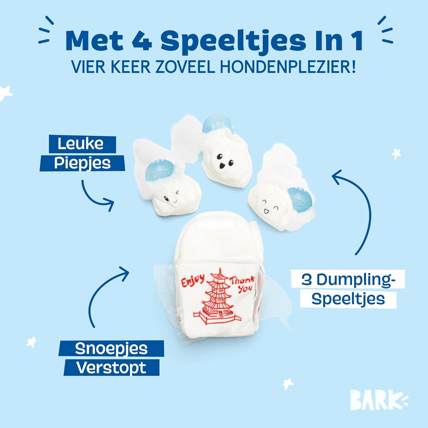 My dog absolutely loves BARK toys. This thing is so freaking cute! The squeaker isnt super loud and obnoxious as other toys are… and the “noodles” keep my boy busy. The chopsticks are fairly durable too so thats a plus.