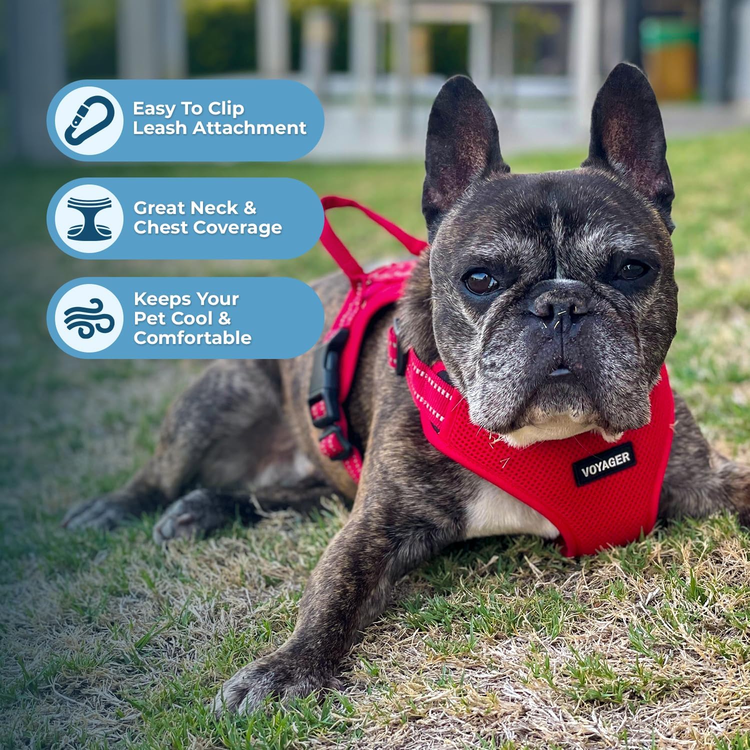 I set out wanting a cheap version and now returning all the other harnesses because they are all to small and quality is crappy. Sticking to Voyager from now on! My two frenchies wear size Large and Large was so much smaller with the cheaper off brands.These hold up and are mesh which makes them so much more comfortable on my dogs. We can put them on for a walk or to wear in the car when heading down the street to visit grandma!( If you find a daily discount or purchase one that’s resold, that can be helpful if price is to high)However I do feel the price point was fair & I didn’t want to wait so I purchased new for the entire amount. I would do it again if I need a quality and harness that I will use for years.Mesh allows for comfort, l have had 0 issues from the first round I ordered about two years ago, they have held up to every one of my expectations. No brainer if you need a quick and easy option for both you and your pups busy times.