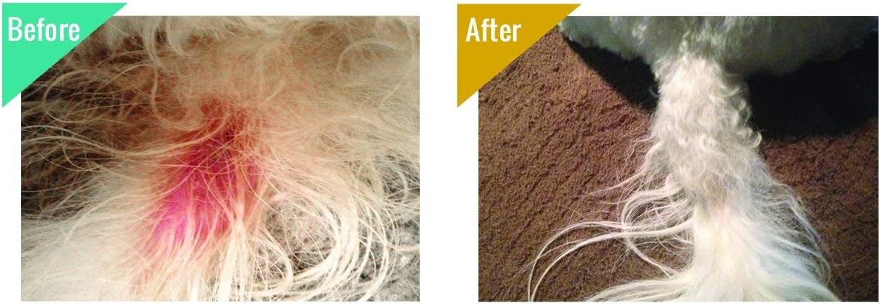 I wasn’t really sure if this stuff would work I’m not sure what was going on with my dog but he had a very dry scaly scabby skin that he would constantly want to itch at I use this twice I only sprayed him twice soak the area one day and the next area again after I had given him a bath with a sensitive skin antiseptic dog shampoo his hair is now coming back no more itching in the area it works very well truly 😊 happy with this spray.