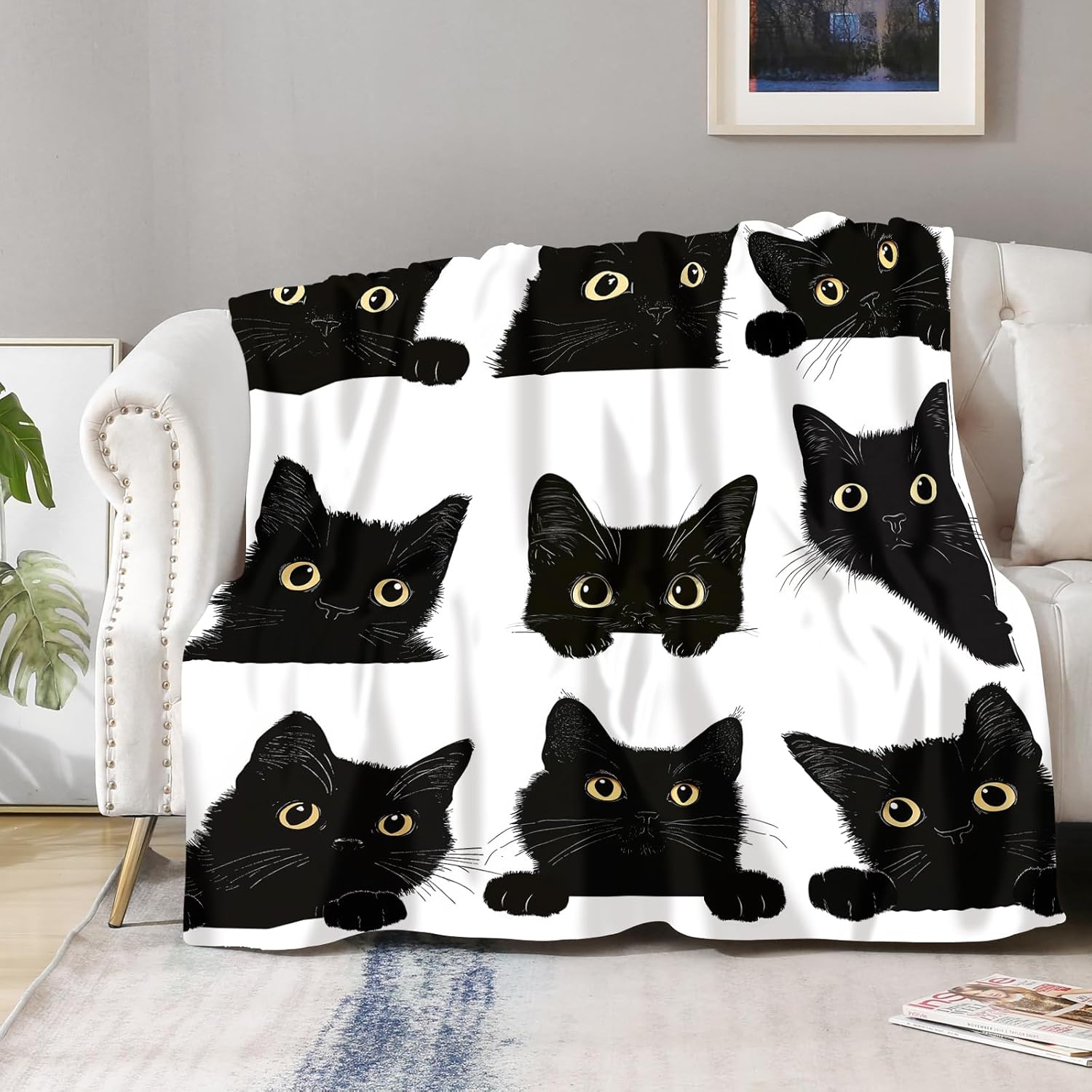 8 reviews for Black Cat Blanket Gifts for Women Kids Girls Toddler Cute Pet Print Throw Kitten Cats Lovers Themed Decor Soft Cozy Bed Couch Fleece Plush Birthday Christmas Lightweight Blanket 50″x60″