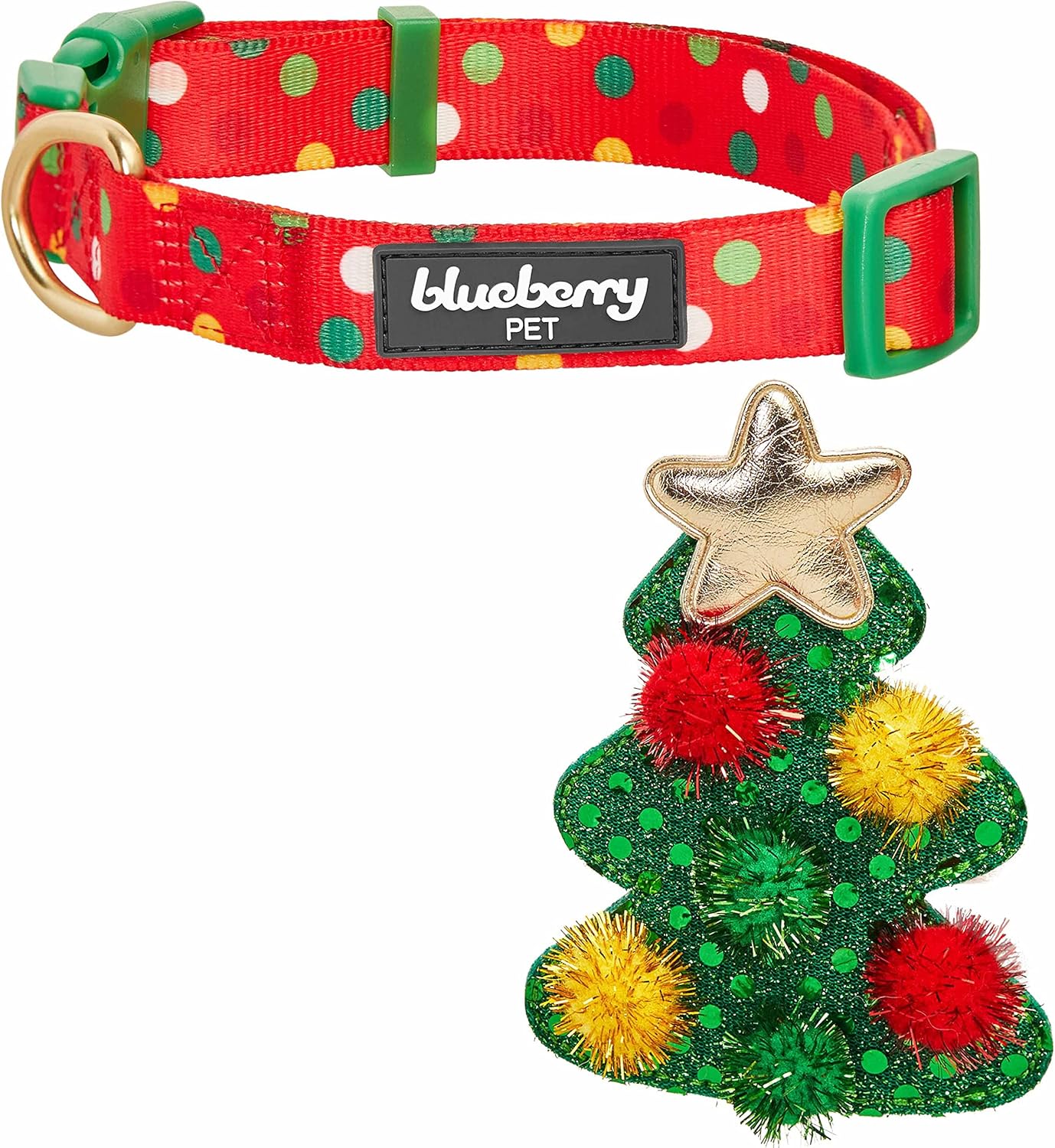 Blueberry Pet Polka Dots Christmas Dog Collar, Large, Adjustable 18″-26″ Neck, Holiday Dog Collar with Bow for Large Dogs