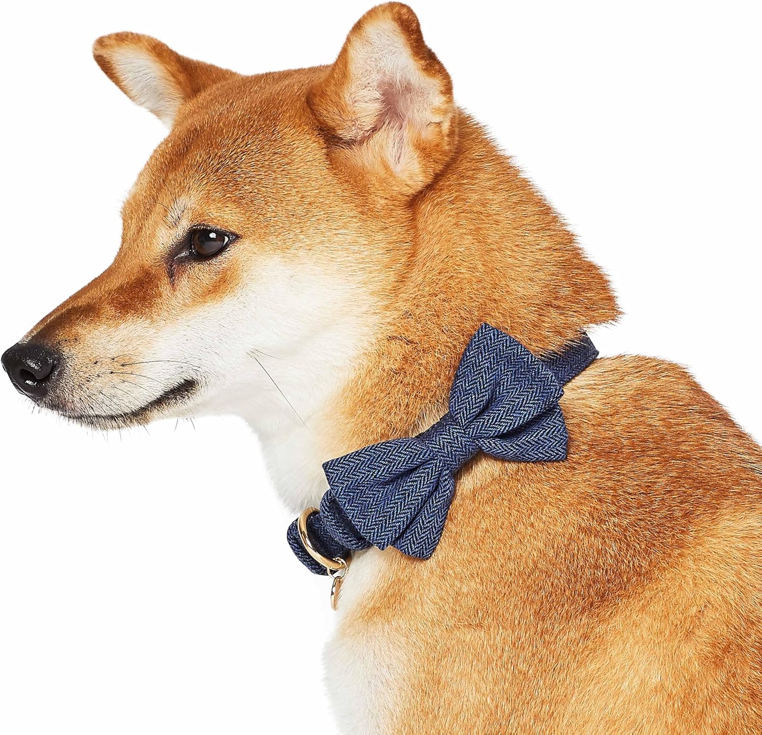 Blueberry Pet Textured Tweed Dog Collar with Detachable Bowtie Accessory in Navy Blue