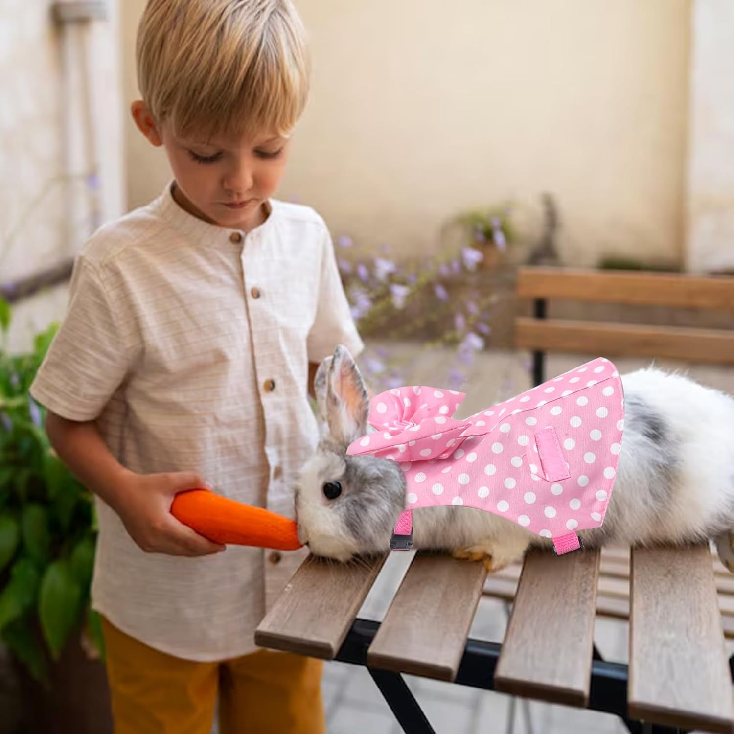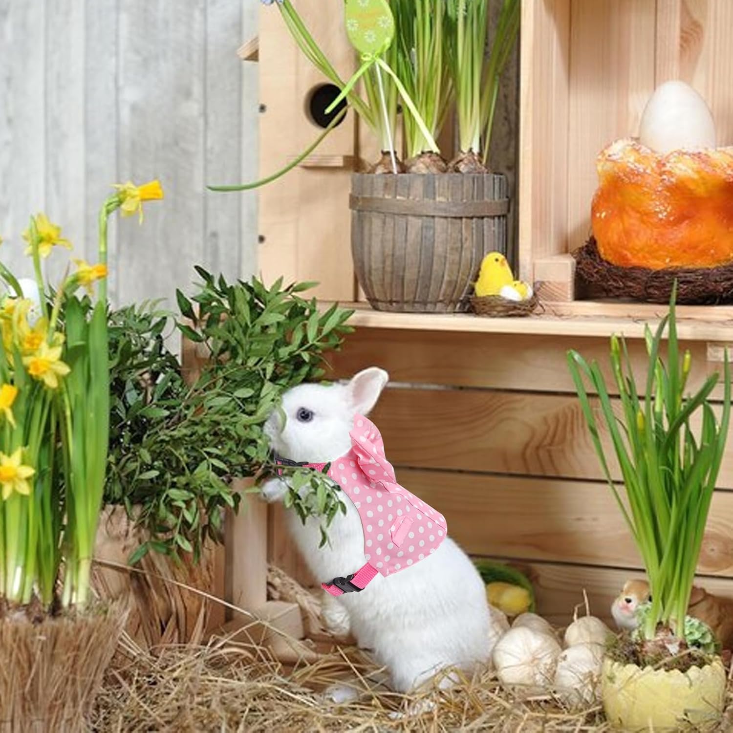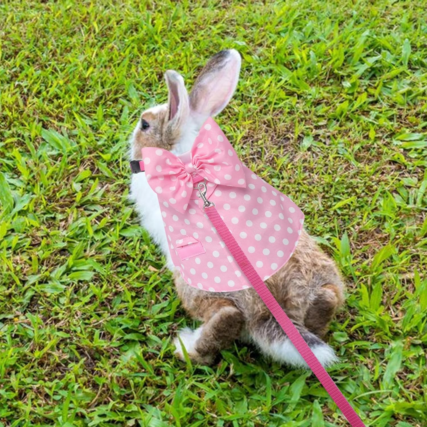 Bunny Harness and Leash Polka Dot Pet Clothes for Rabbits Dress Costume Walking Harness for Guinea Pigs Piggies Outdoor Safety Camping Hiking Training Easter Small Animals Accessory M Size