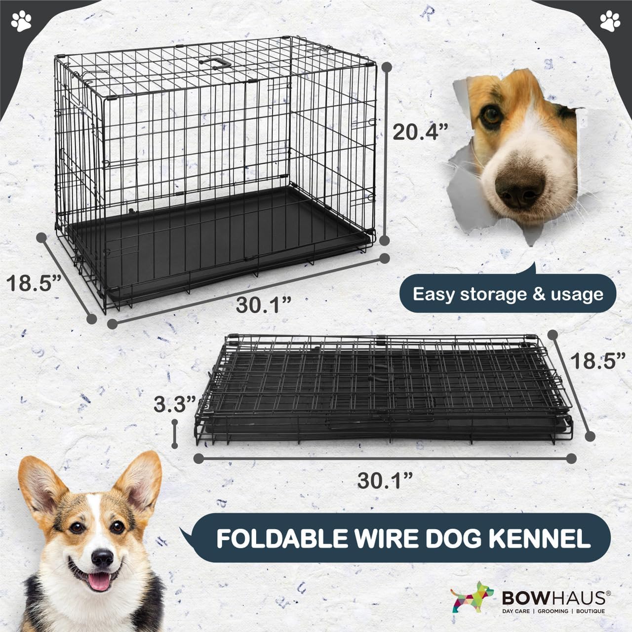 CAPHAUS Foldable Dog Crate Wire Metal Dog Kennel w/Divider Panel, Leak-Proof Pan & Protecting Feet, Single & Double Door, Small, Medium & Large Dog Crate Indoor Wire Dog Cage, 30” w/Easy-Flick Lock