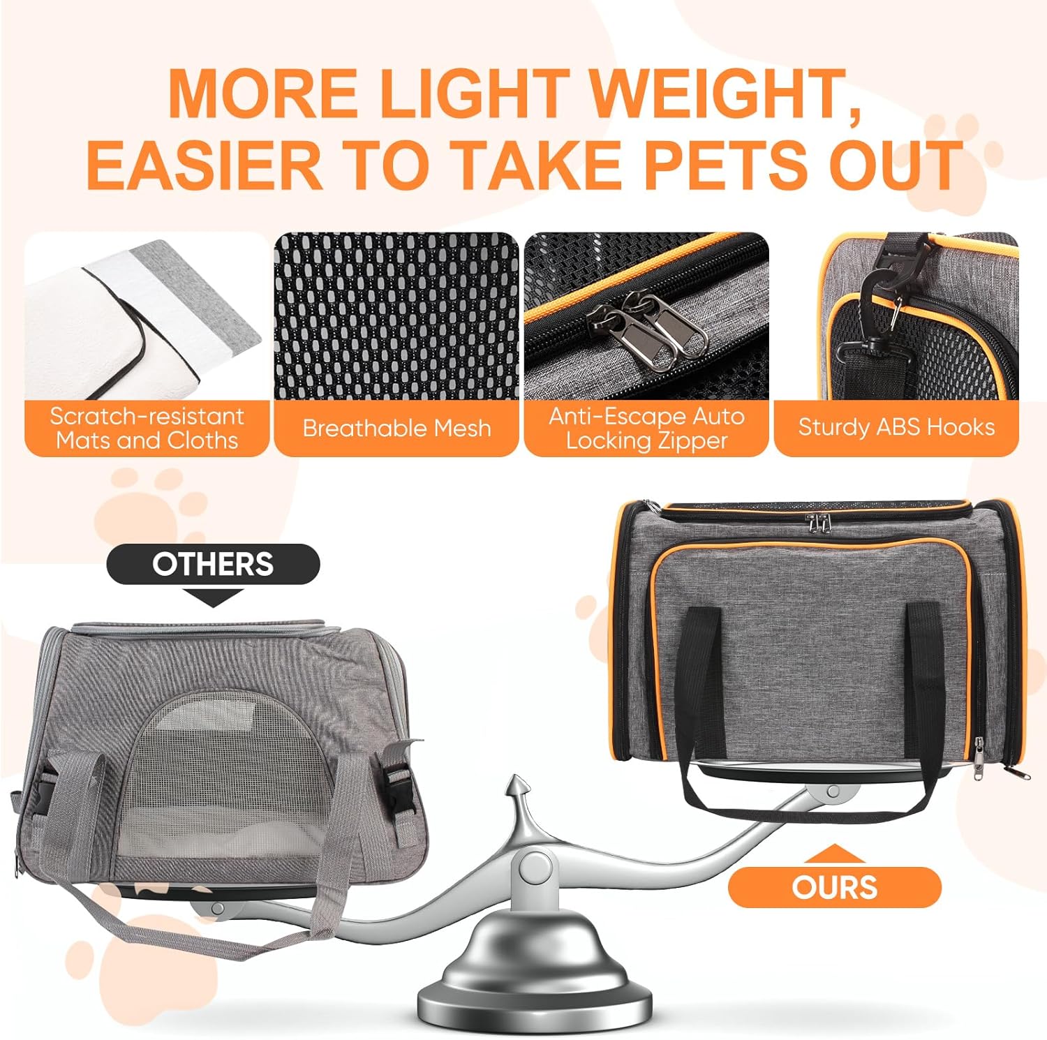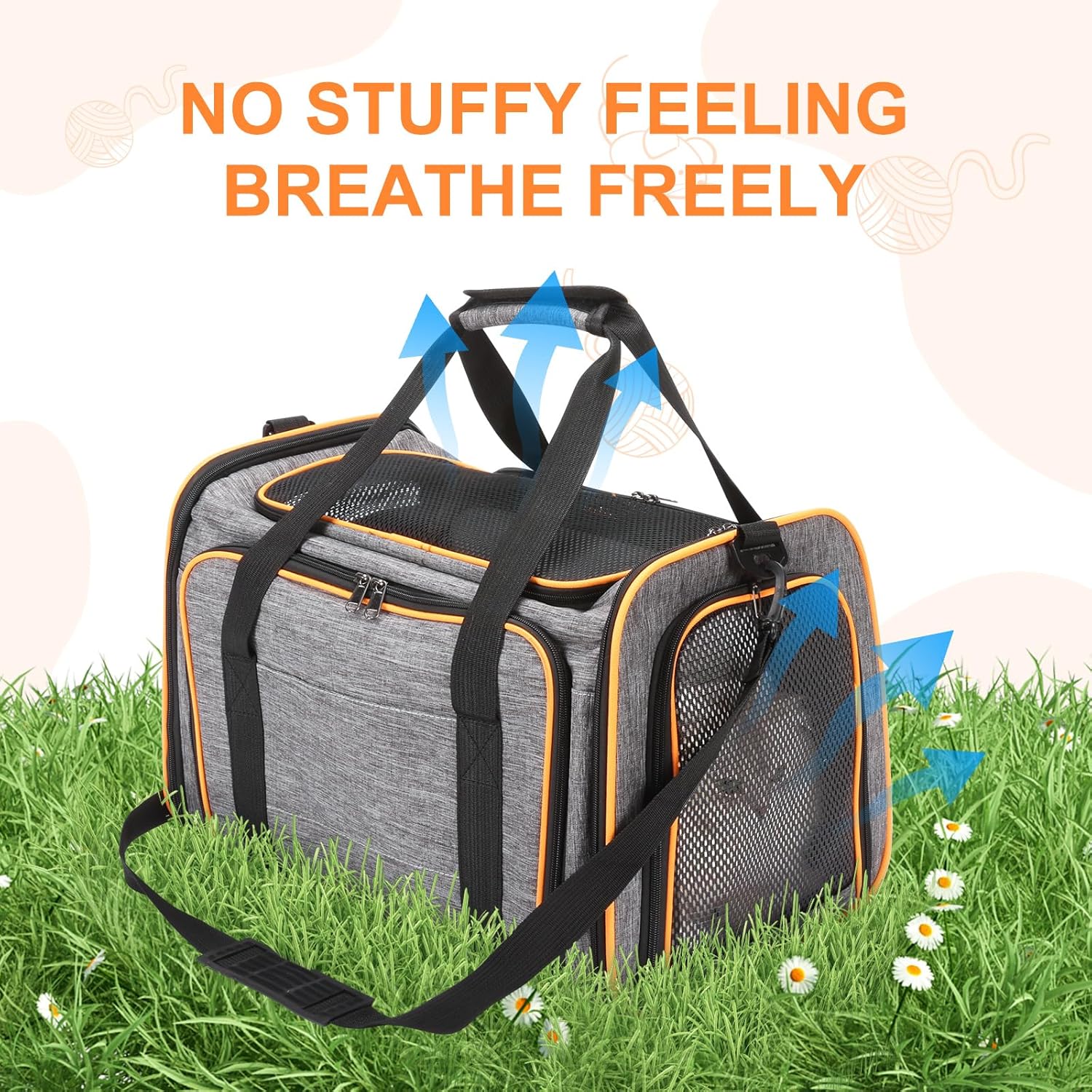 Durable & Portable Materials: Crafted with breathable mesh panels, dual-way zippers, and reinforced stitching, this collapsible cat carrier is foldable for easy storage. The microfiber frame and padded handles prevent sagging and provide stability.
