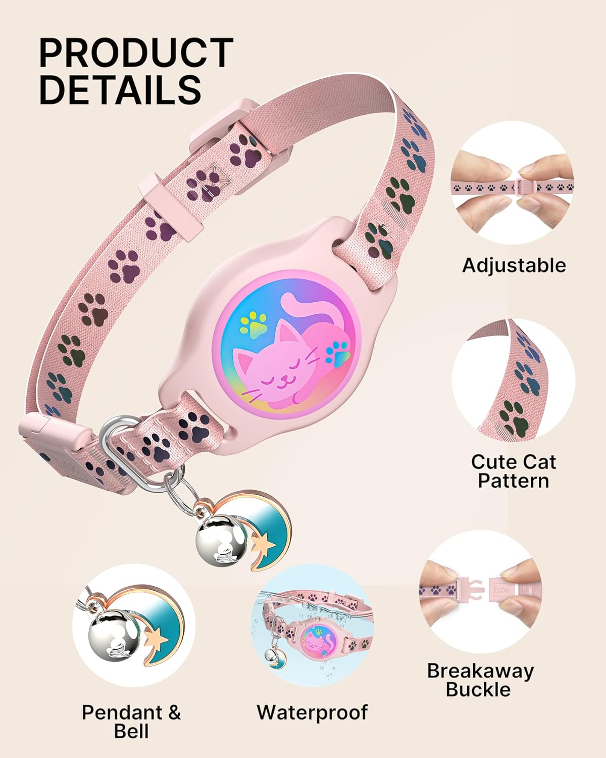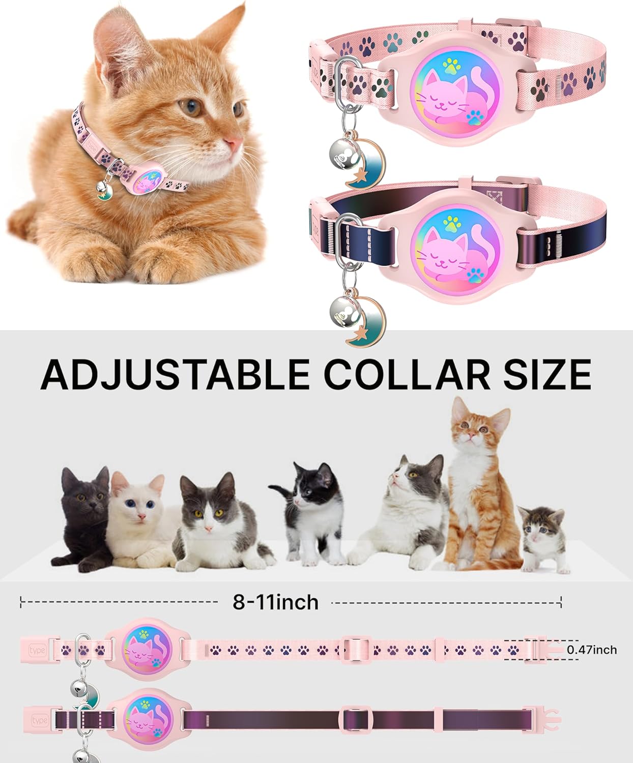 [Adjustable Fit for Kittens & Adult Cats]: Easily adjustable from 8 to 11 inches, this adjustable Airtag kitten collar provides a perfect fit for small, medium, or large cats.