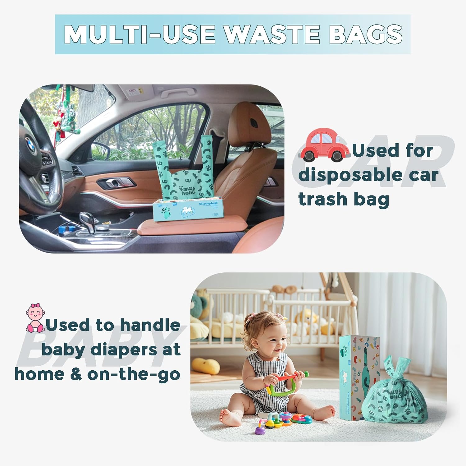 ćEco-Safe &Multi-UsećDo good for the planet and your home! These plant-based bags are a greener alternative for disposing of kitty litter or doggy poop. Plus, they’re super strong for food scraps, baby diapers, or garden waste ā your go-to for everyday cleanup.