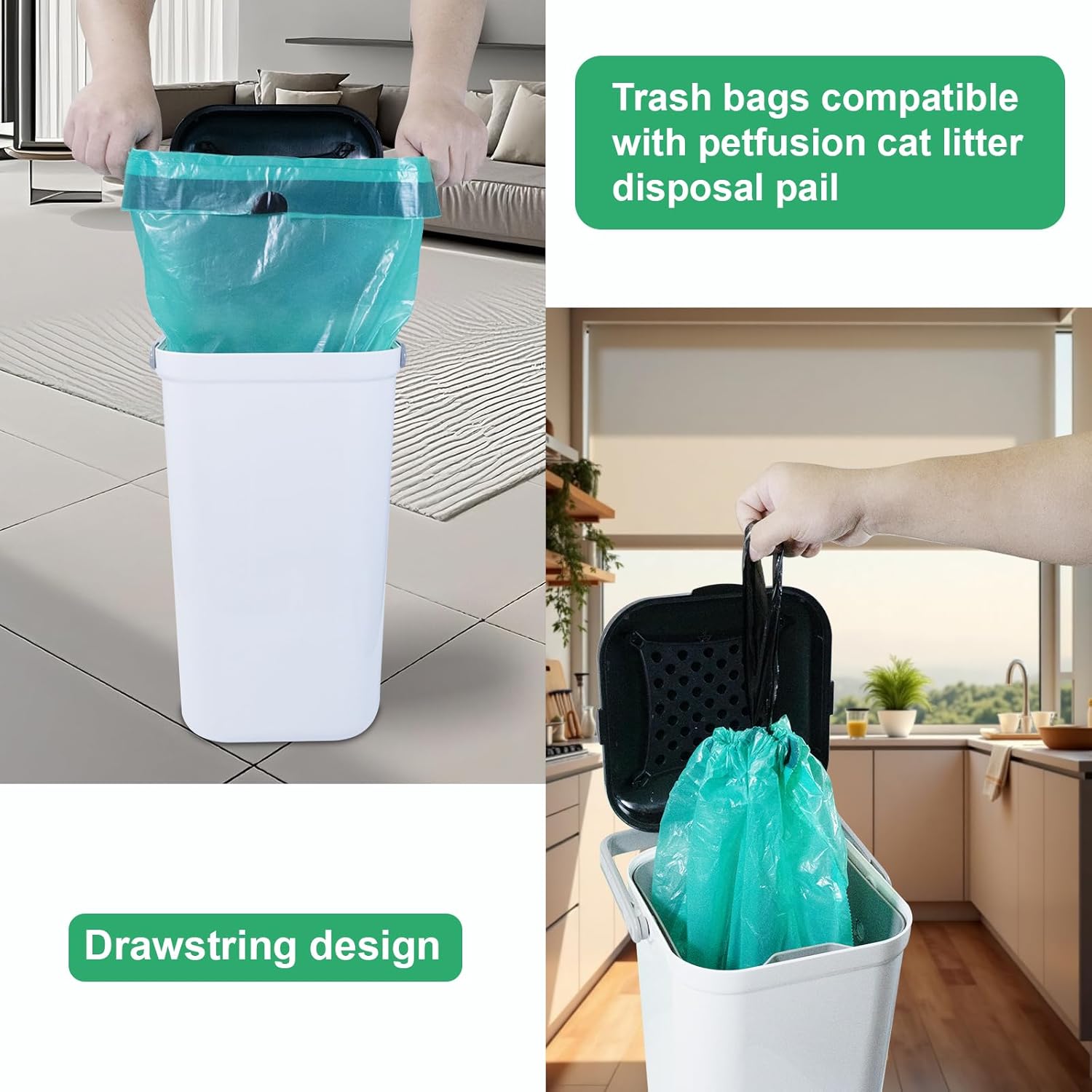 These waste bags work well with my PetFusion Cat Litter Disposal Pail. They’re thick and feel sturdy, which gives me peace of mind when tossing out heavy clumps. I like the drawstring—it makes cleanup quick and mess-free. The 20-count pack lasts a while, and for me, it’s been a convenient and dependable option for handling pet waste.