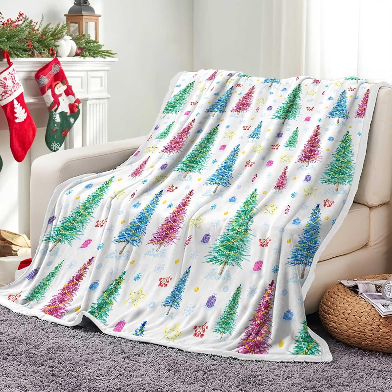 5 reviews for Christmas Blanket – Winter Holiday Colorful Tree Snowflakes Decoration, Cabin Cozy Reversible for Sofa Couch
