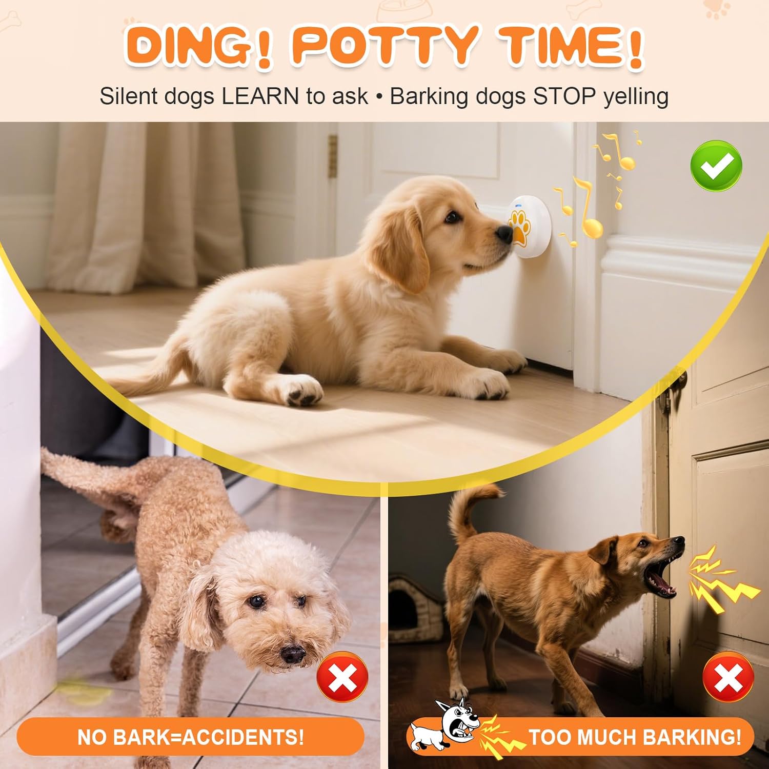 🔔 28 Pre-Set Tones – Assign unique chimes for potty/play/food! Create customized doorbell systems for multi-dog homes – train your pets to communicate different needs! (Note: Requires owner training to establish tone meanings)