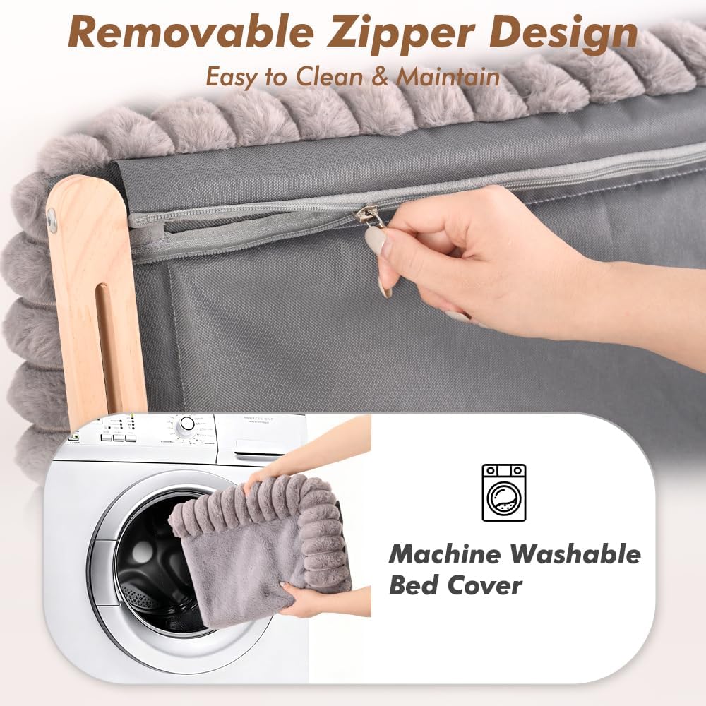 【Superior Support & Comfort】This perch is designed with a three-sided cushioned edge specially contoured to match cat’s natural posture. The furry bolsters provide gentle support for your cats’ head and neck, make it ideal for all sleeping styles. Made from cloud-soft faux rabbit fur, the fluffy bed offers irresistible comfortable feeling to your cats with every nap.