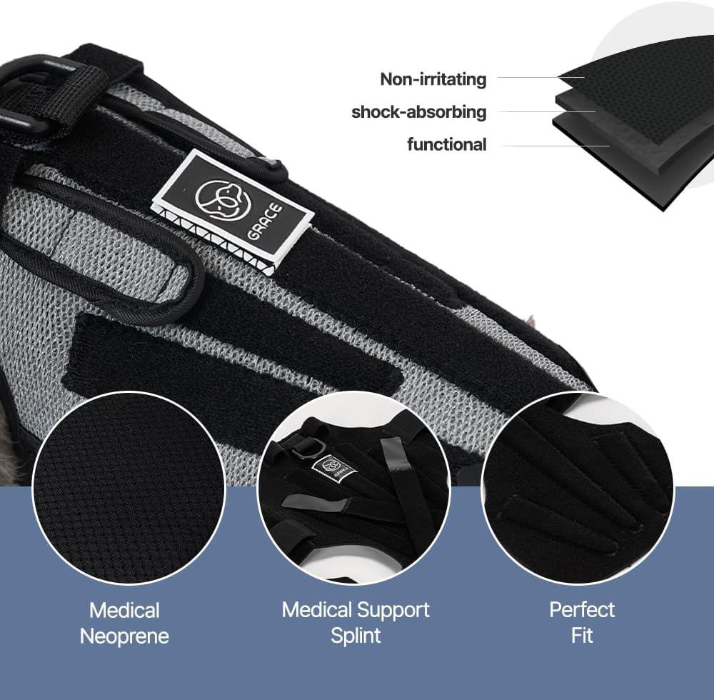 [Product Features] 1. [Premium Medical Brace] Grace Pet Spinal Support Brace is based on Pet’s body anatomy and it helps to Prevent dog back deformation due to spinal diseases and aggravation of the diseases. aggravation of the diseases. 2. [Excellent Spinal Support] This professional dog spinal support brace is designed to provide optimal relief for conditions like IVDD, back injuries, and post-surgery recovery. It helps alleviate pain and discomfort while keeping the spine properly aligned for maximum support and stabilization. Perfect for rehabilitation, it aids in the healing process and promotes your pet’s comfort.