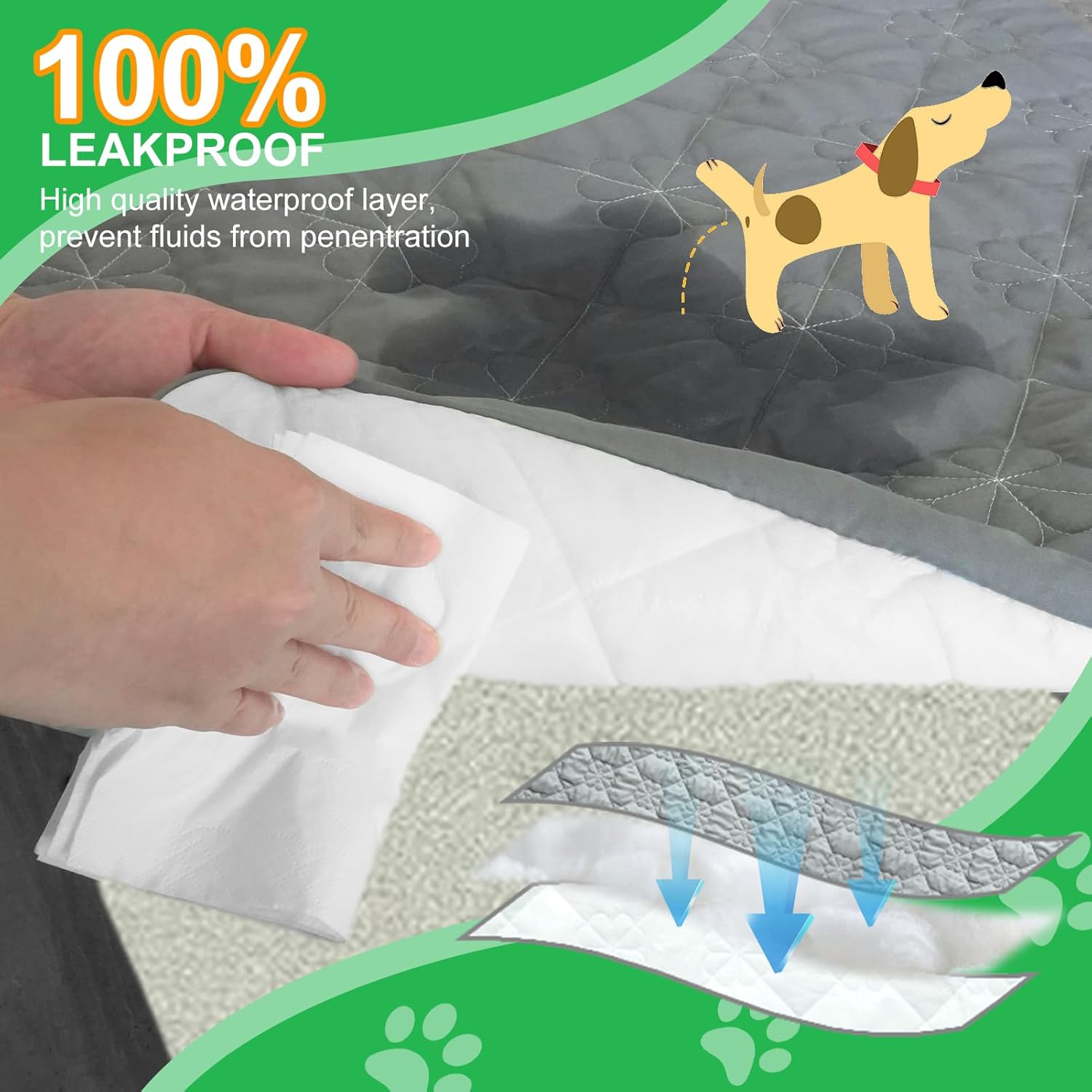 3 Layer Design : This dog bed washable cover is made of soft material with 3 layer construction. Premium microfiber quilted surface provides a soft tactile experience for your pet, the middle layer of thickened cotton filling absorbs liquids instantly, while the bottom TPU waterproof layer prevents leaks, and keep your dog bed looking new.