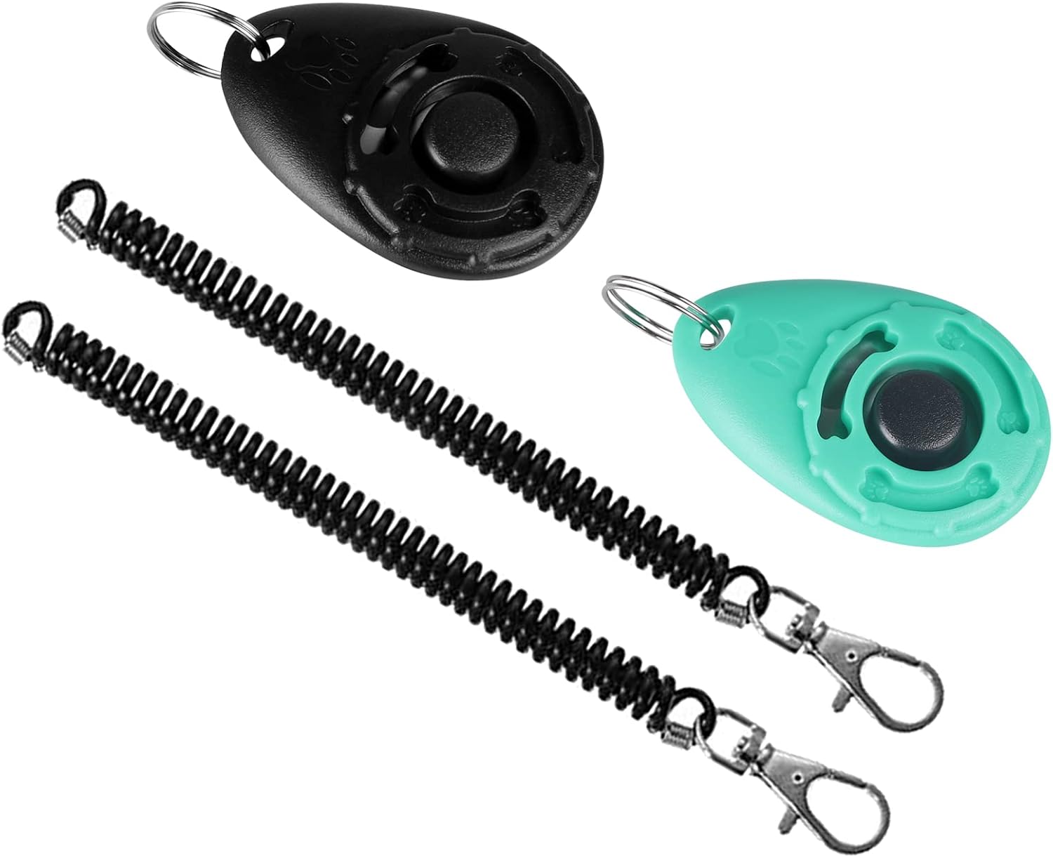 Dog Clicker for Training, 2 Pack Dog Training Clicker, Clicker Dog Training with Wrist Strap, Pet Training Clicker, Perfect for Dog Cat Puppies Behavioral Training (Black and Water Lake Blue)