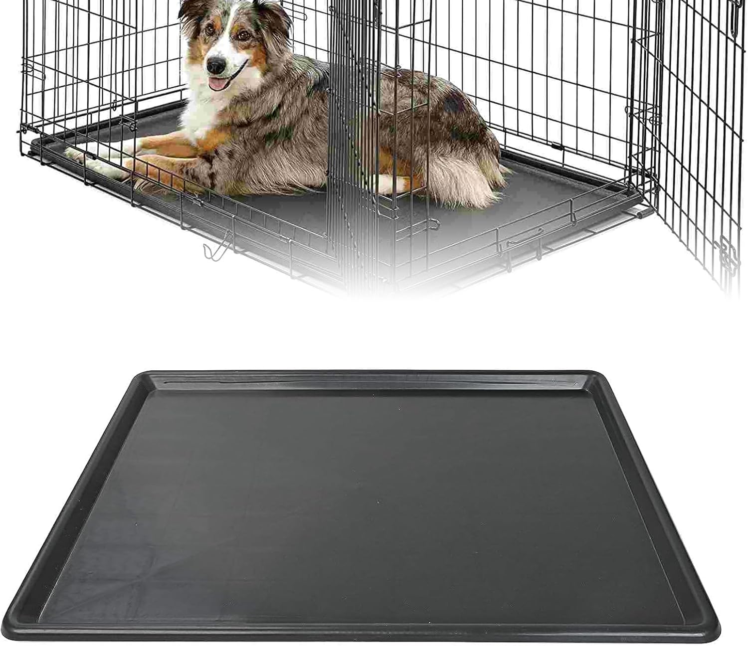 【Dog Crate Tray】The size of the dog crate tray is 35.4”x23.5”. It is suitable for most standard dog cages, please measure the size of your cage before purchasing.