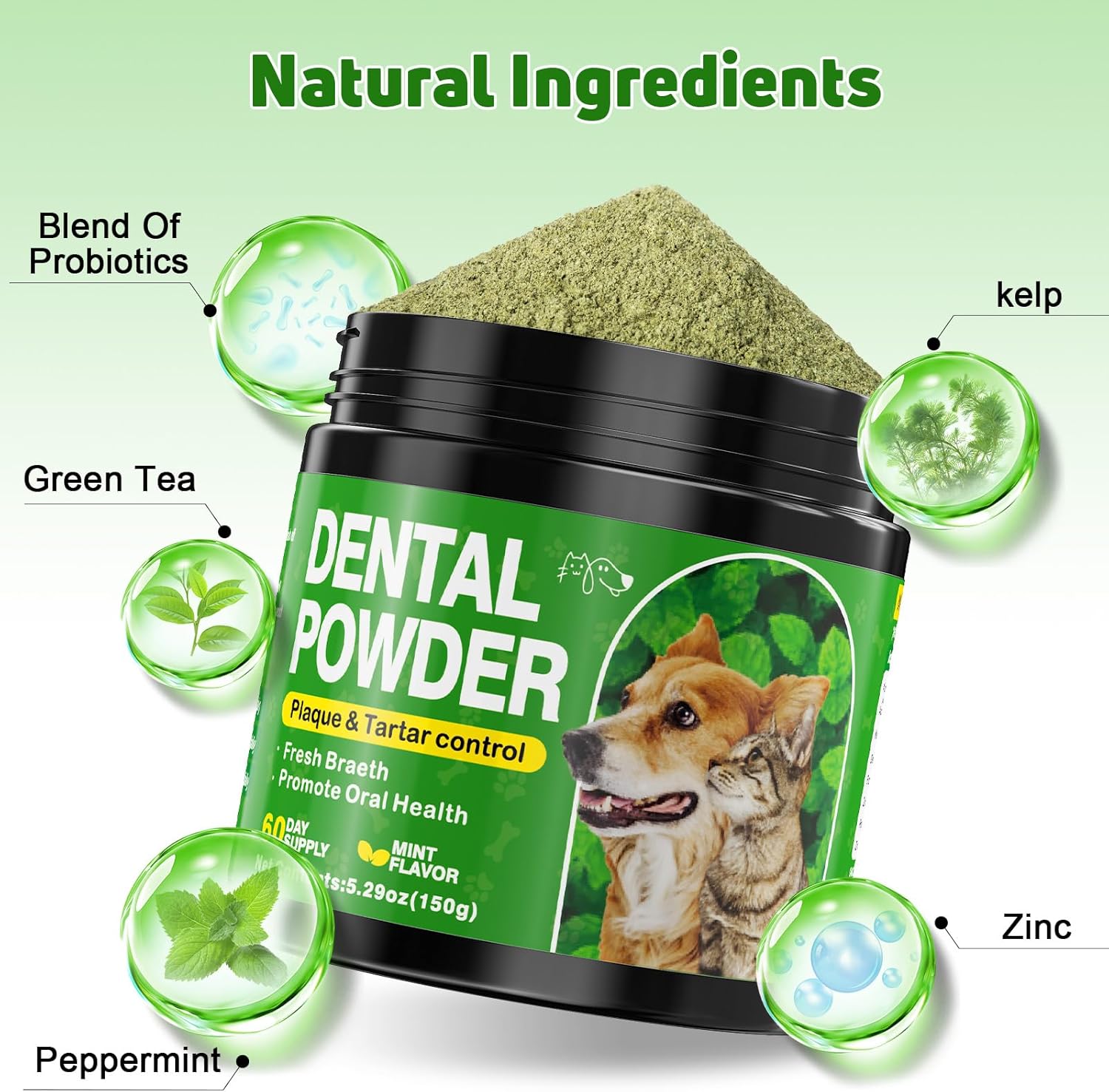 Dog Dental Powder, Dog Teeth Cleaning Powder and Cat Breath Freshener, Reduces Plaque & Bad Breath Off Pet Dental Care Supplies Tartar Remover for Dogs & Cats(150g)