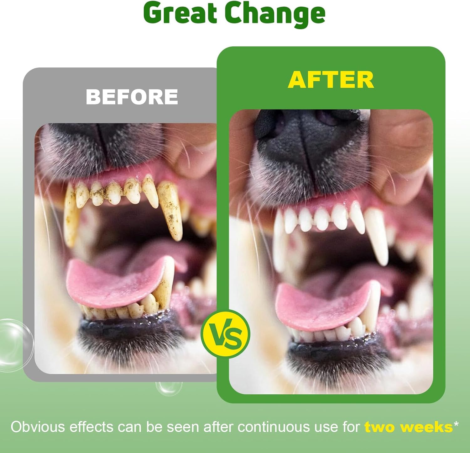 2-in-1 Effect: Our dental powder for dogs teeth can easily breaks down stubborn plaque and tartar buildup to whitens your pet teeth while neutralizing bad breath at the source.