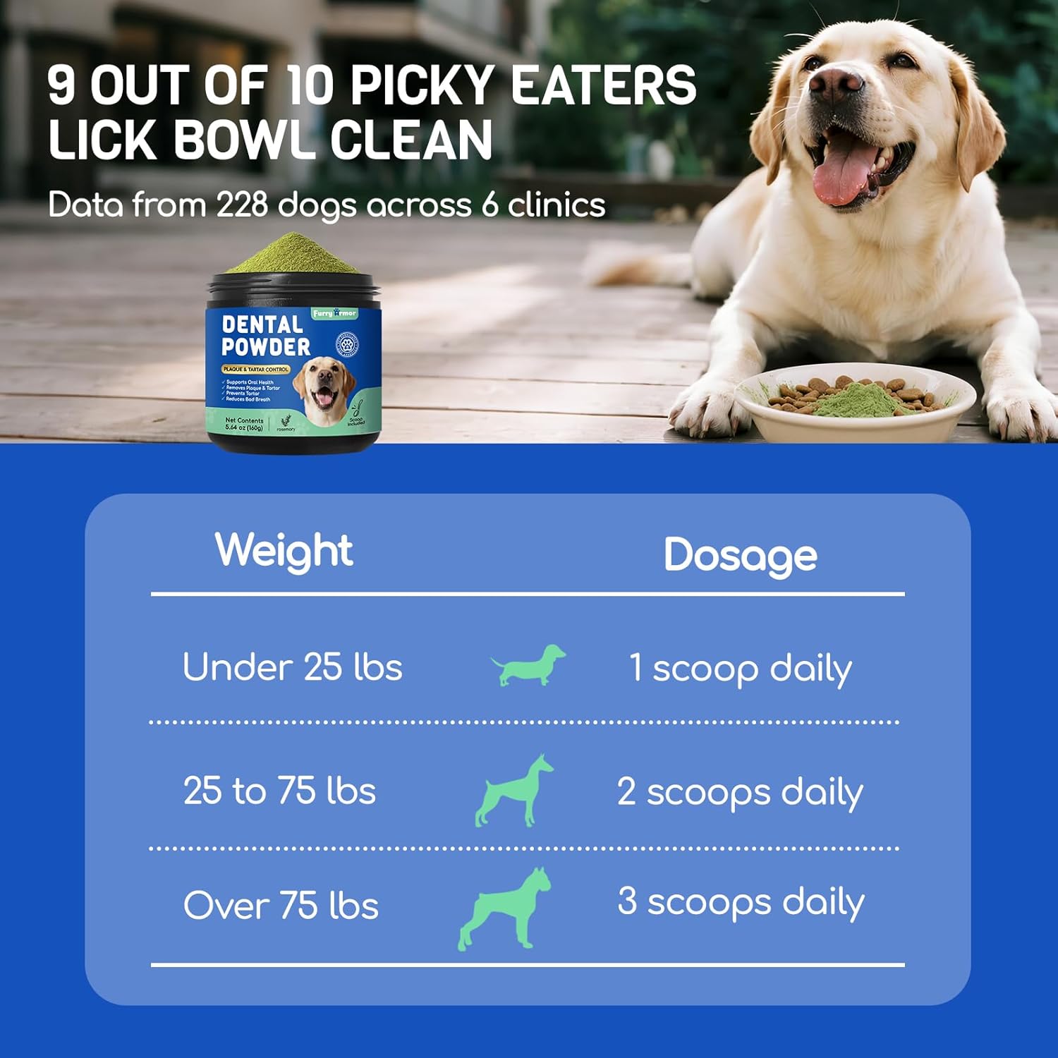 【Long-Lasting 60-Day Supply – Twice the Value】 Get a full 2-month supply in one pack—double the amount of many competitors. This dog dental powder serves as an all-in-one plaque remover for dogs, tartar control powder, and daily dog breath freshener. An economical dental care for dogs solution that fits easily into any routine, whether used alone or with your favorite dog toothbrush and toothpaste.