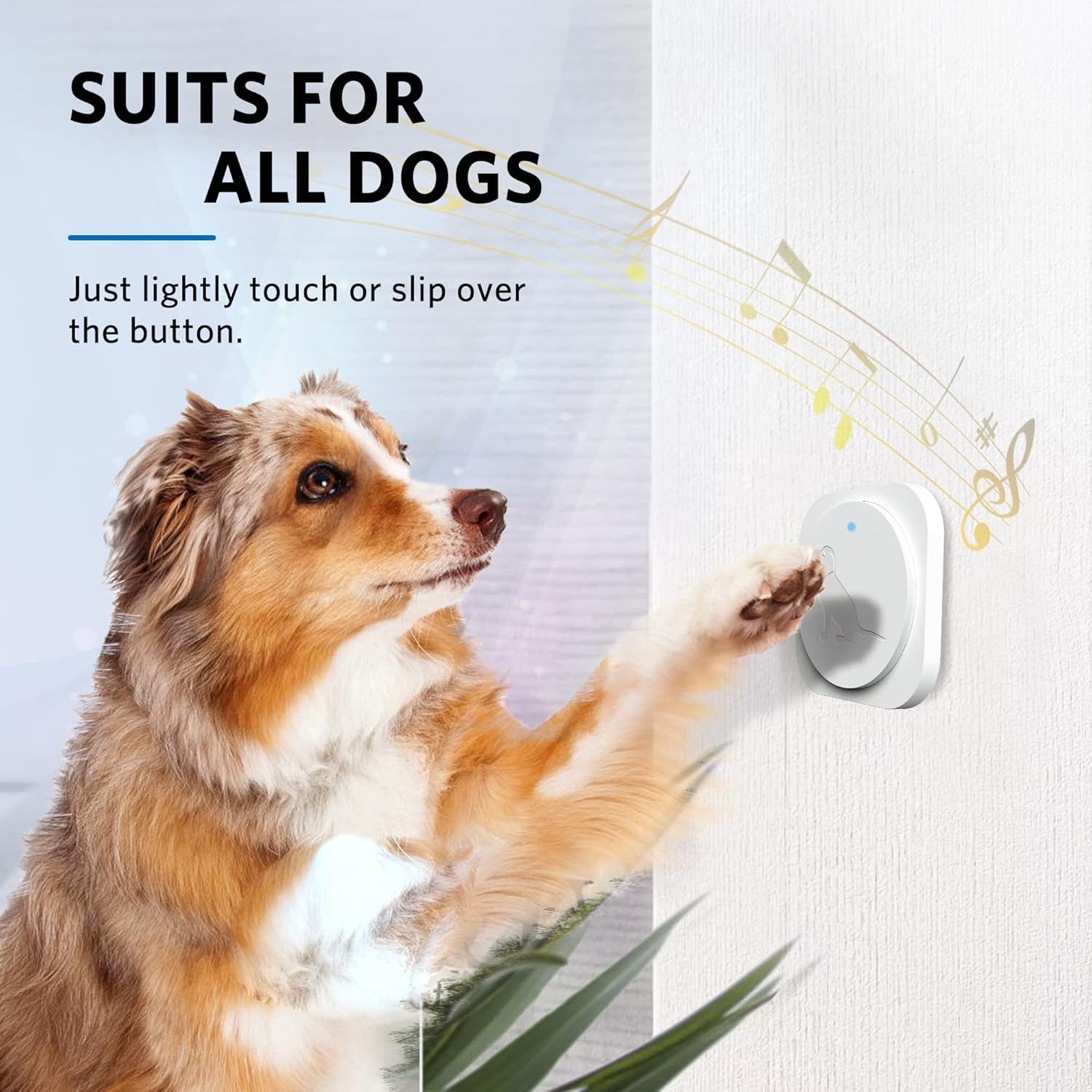 Works for all Dogs: Our dog doorbell has a large and sensitive touch area that is easy for dogs of any size, whether you have a small puppy or a large one. Additionally, it is CE, FCC, and RoHS approved.