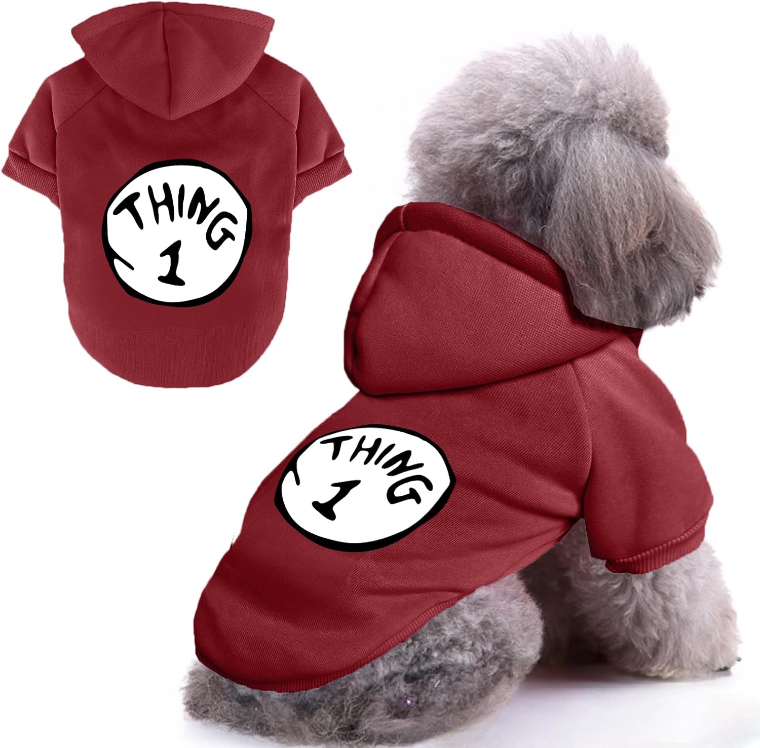 8 reviews for Dog Hoodie Pet Clothes for Small Dogs Thing 1 Printed Hoodies Medium Puppy Hooded Sweatshirt Pullover Outfit(Wine Red,L)