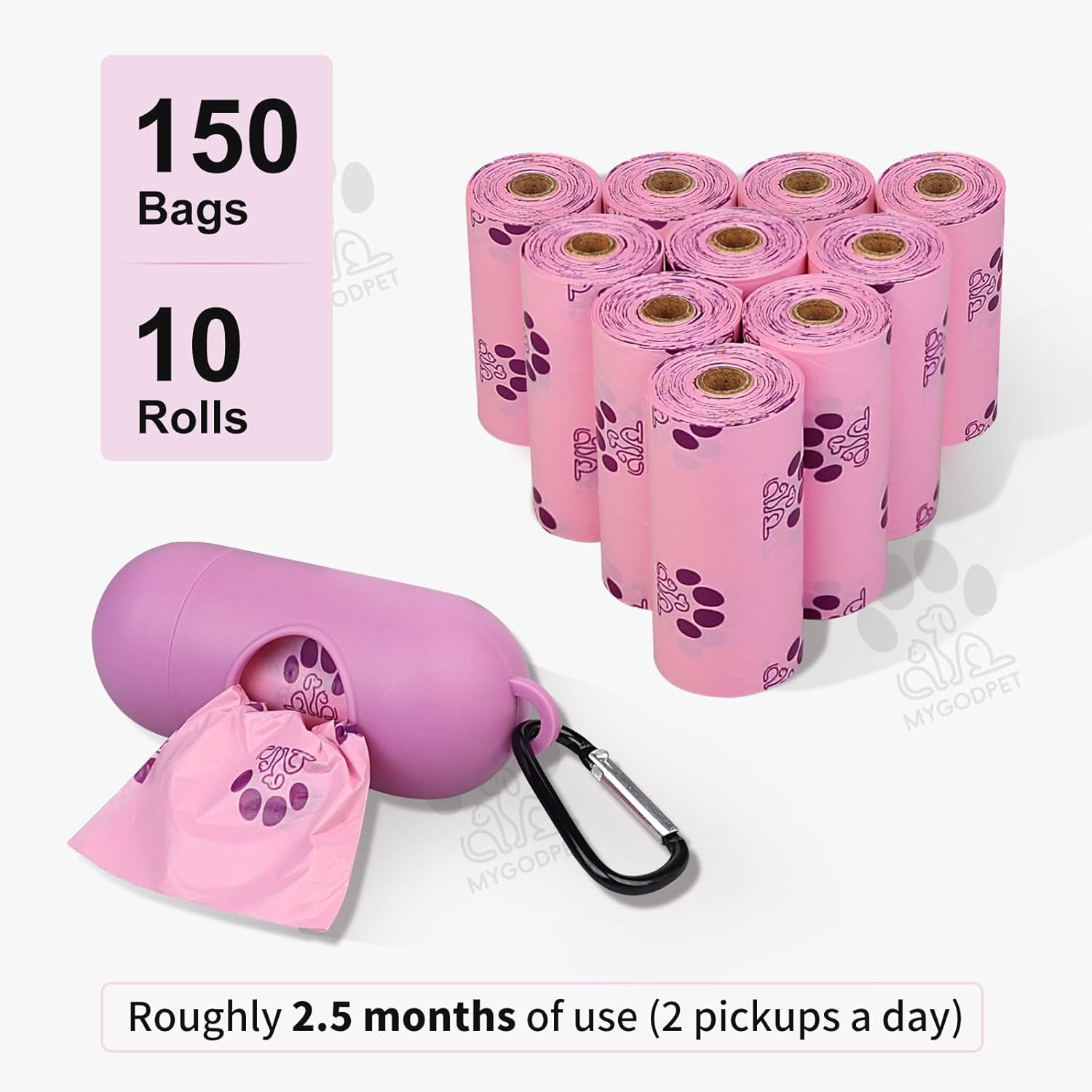 🐕EPI Degradable Material:Dog poop bags are essential pet supplies when walking your dog,our MYGODPET dog poop bags are all made of brand new materials,not secondary recycled materials,and added with unique EPI!EPI biodegradable dog waste bags decompose into water,carbon dioxide and soil organic matter through photo/thermal oxidation and environmental microbes,and will naturally decompose after 12-18 months in the soil