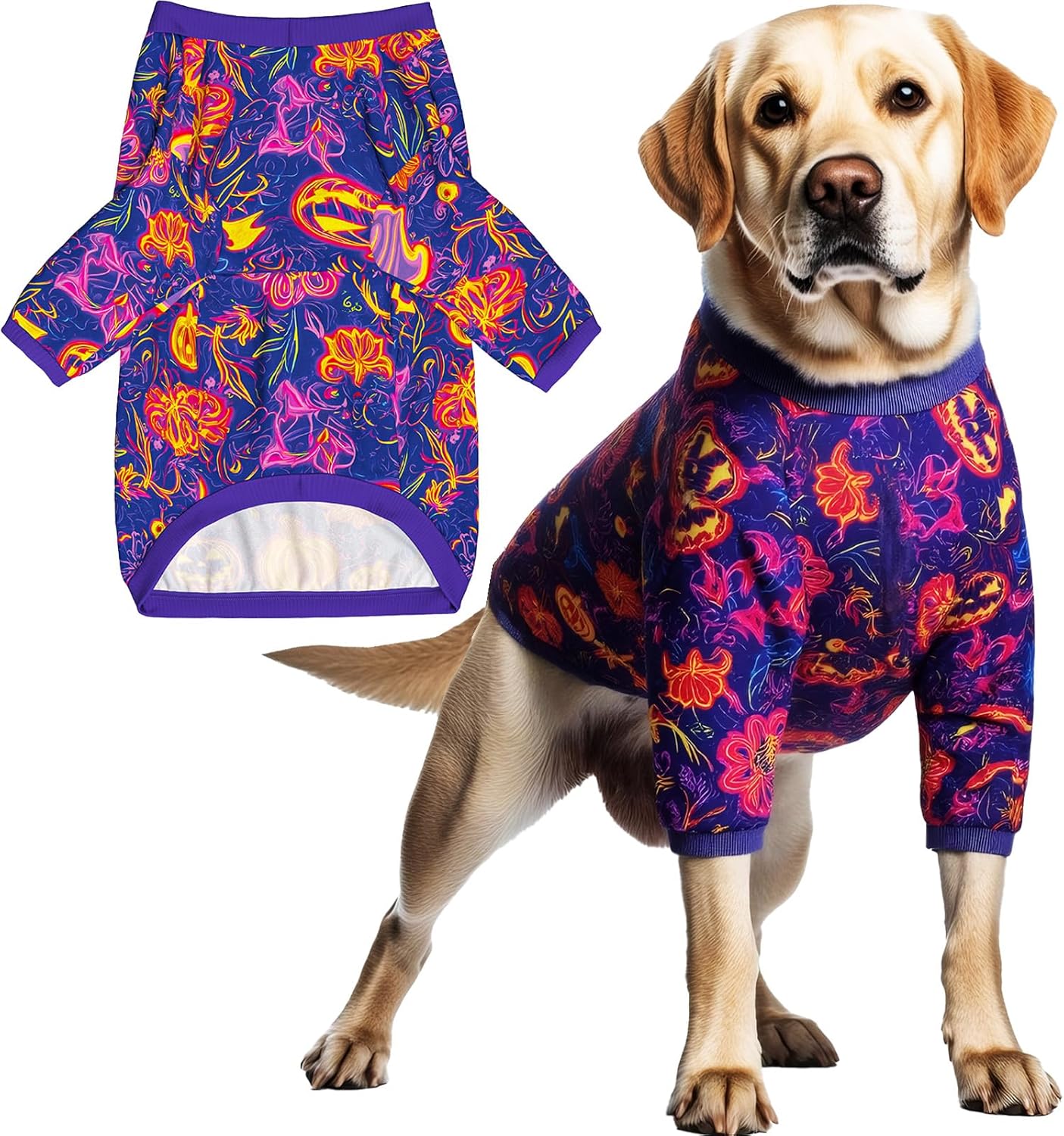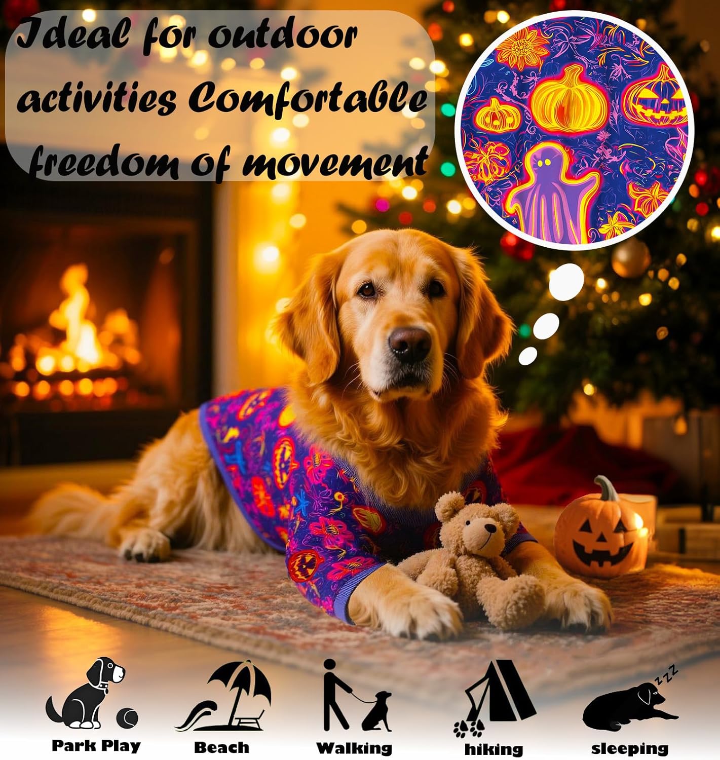 Dog Shirt for Large Dogs Neon Halloween Pumpkin Ghost Pajamas