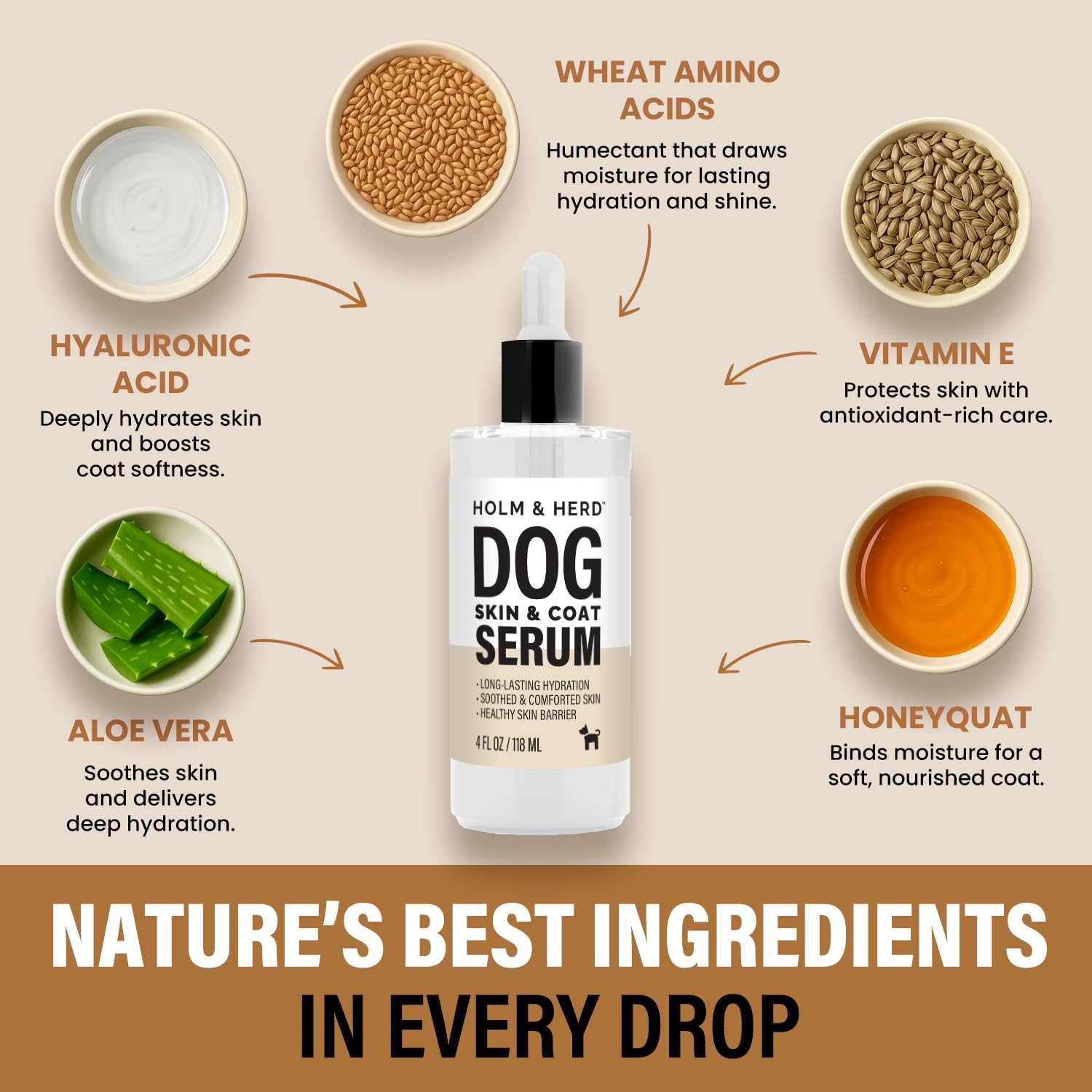 NOURISHING INGREDIENTS – Crafted with Vitamin E, Pro-Vitamin B5, Wheat Amino Acids, and Honeyquat, this dog moisturizing serum relieves and deeply conditions the dogs skin while promoting a silky, shiny coat that looks as healthy as it feels.