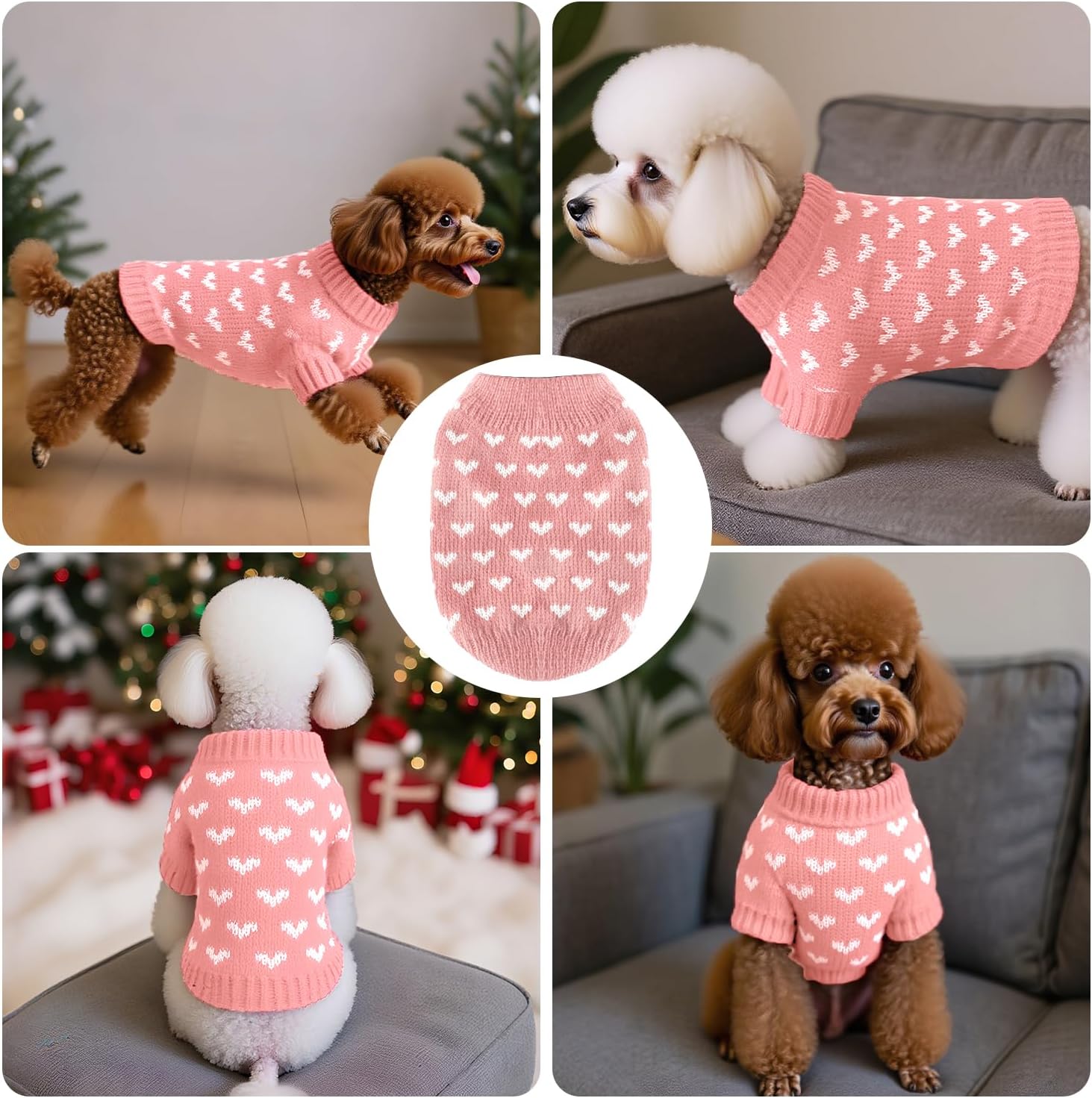 8 reviews for Dog Sweater, Knitted Heart Pattern Puppy Sweaters for Small Medium Large Dogs, Girl Boy Autumn/Winter High Elasticity Comfortable Pet Clothes, Christmas Holiday New Year Pet Outfit(Pink, M)
