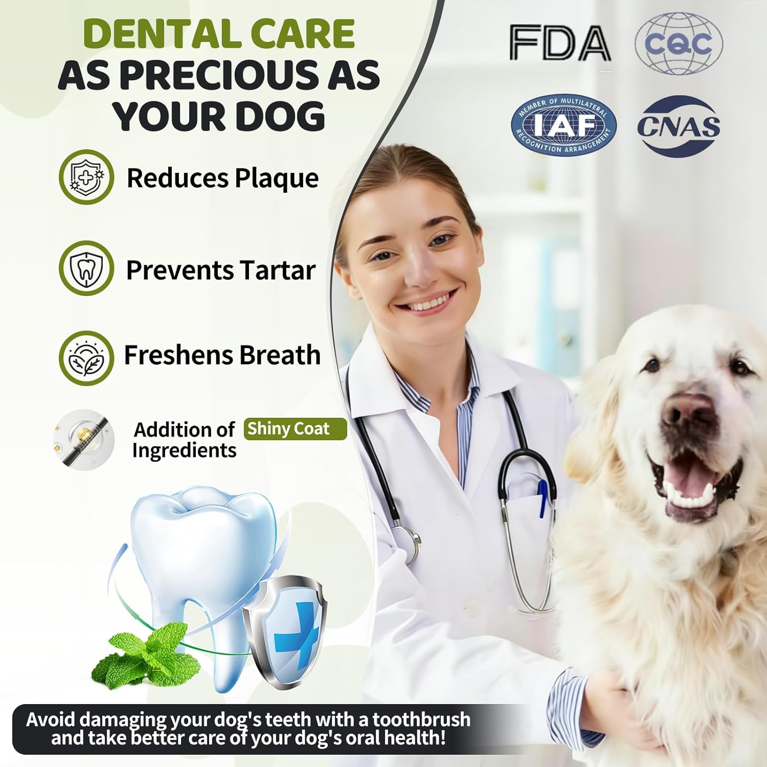 【LONG-LASTING FRESH BREATH】Say goodbye to bad dog breath. Our fresh breath dental powder for dogs contains natural, pet-safe dog breath freshener ingredients,sufficient brown algae and mint ingredients neutralize odors and promote a fresher smelling mouth with every meal, making it a powerful dog bad breath treatment. Ideal for dogs prone to dog breath issues. It features a chicken flavor preferred by most dogs, ensuring your pet receives optimal dental care and a healthy solution
