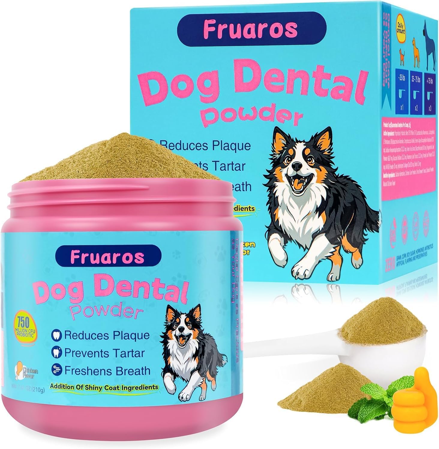 Dog Teeth Cleaning Powder, Dog Dental Powder for Breath Fresh & Teeth Cleaning, Targets Tartar & Bad Breath with 750 Million Probiotics, Dog Tooth Powder Plaque Off Dental Care, 105 Scoops, 7.4 OZ