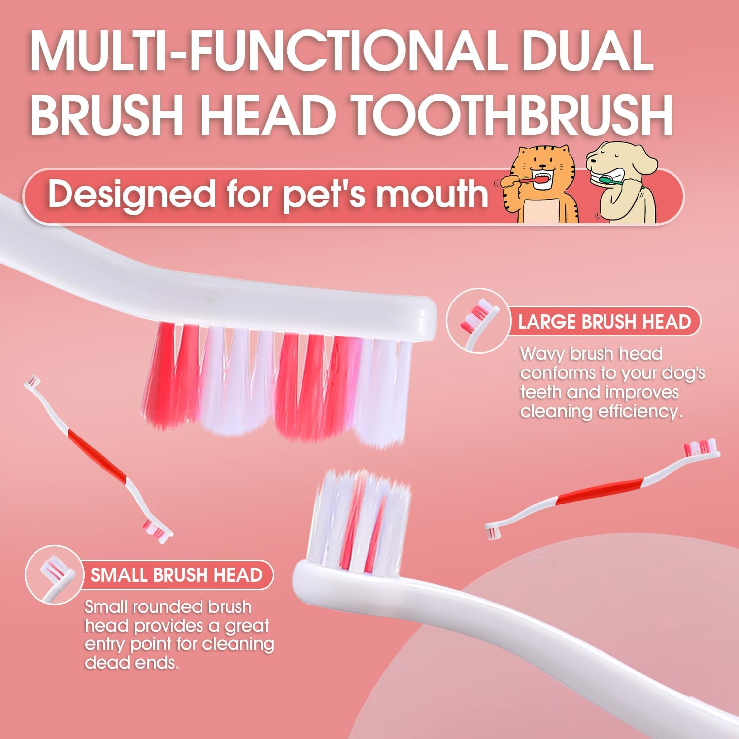Newly Upgraded Design – Two Brush Head Sizes for a Perfect Fit: The unique patented dual-head design features a large and small brush head to fit dogs over 12 lbs. It makes daily dental care easier, faster, and more comfortable—covering every angle for a complete clean.