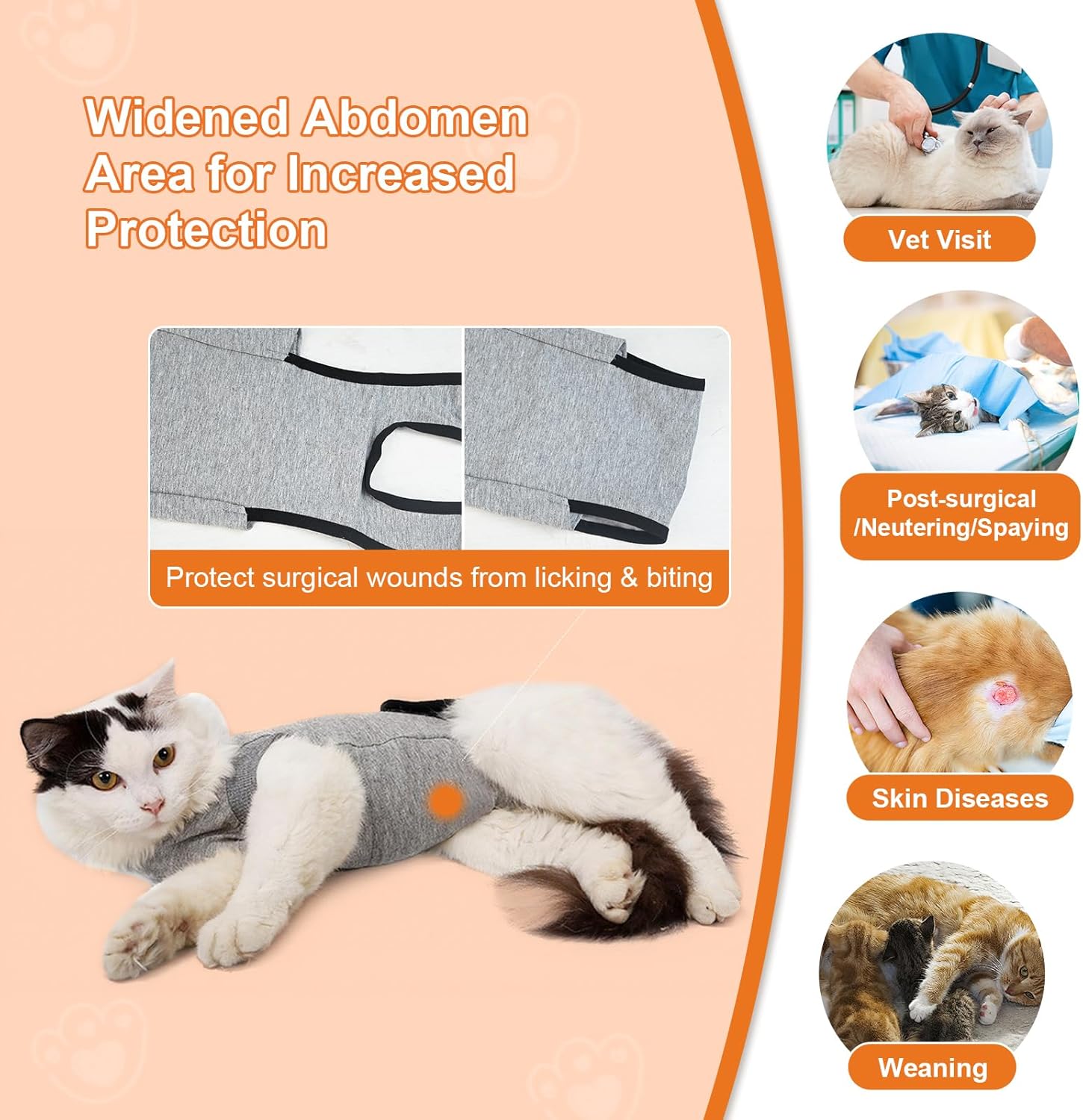 CLOSE-FITTING FIT: 🌺The close-fitting fit brings warmth. The cat is like in the owner’s arms, psychologically appease the injured cat, and plays a postoperative stability. Act as an anxiety wrap and help your pet heal faster. Reduce anxiety during weaning.