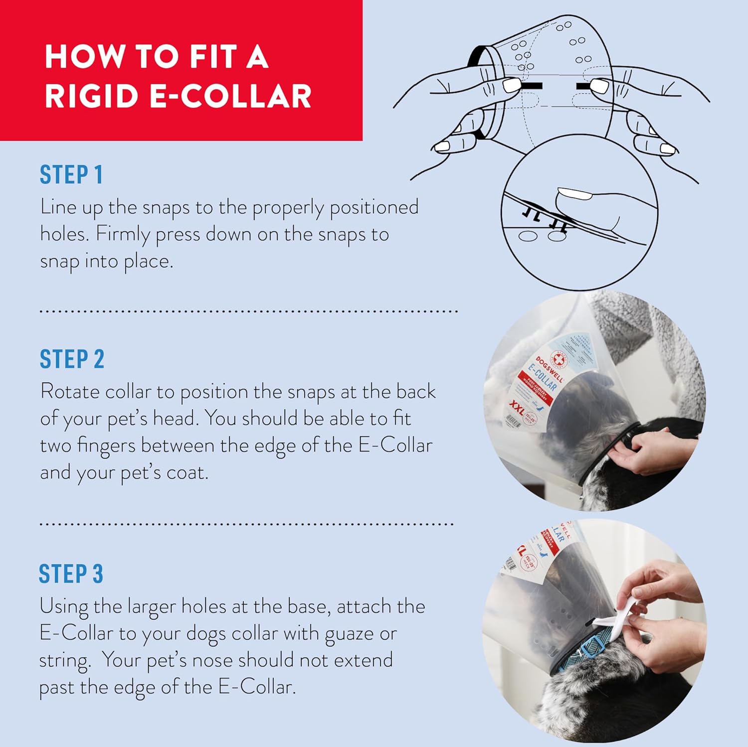Rigid E-Collars offer the best all-around protection for your pets injury. Ideal for post-surgery or wound recovery, treatment of hot spots, breaking the itch-scratch cycle, helping your pet stop licking medication and end self-inflicting wounds. Our soft padded edge design and lightweight material makes this product comfortable for your pet and helps to protect your furniture.