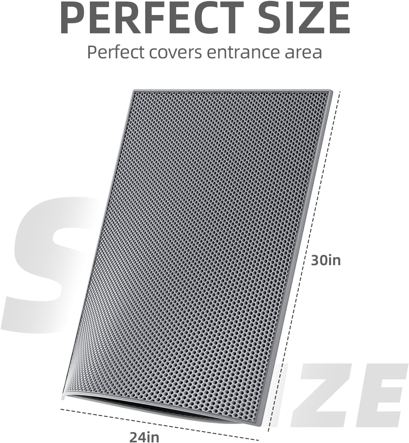 ESTHELLO Cat Litter Mat Large, Cat Litter Trapping Mat, Honeycomb Double Layer Design, Easy to Clean,Washable (30’’ x 24’’ Gray