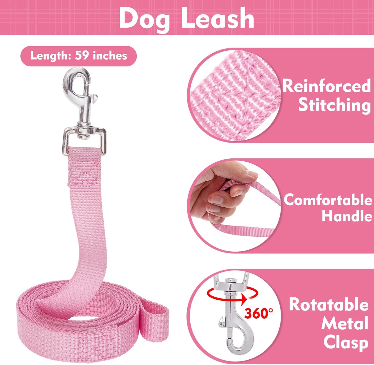 NO CHOKE: This pink dog harness will effectively reduce the pulling on your pup’s neck and gives your dog the best comfort. The no-tangle dog leash allows your dog to move relatively more freely.